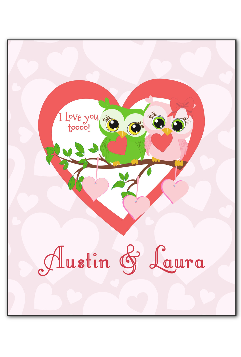 This sweet design, complete with adorable owls hooting to each other, "I love you toooooo!," is sure to make her heart melt. With white hearts on a pale pink background, it is just perfect for Valentine's Day.