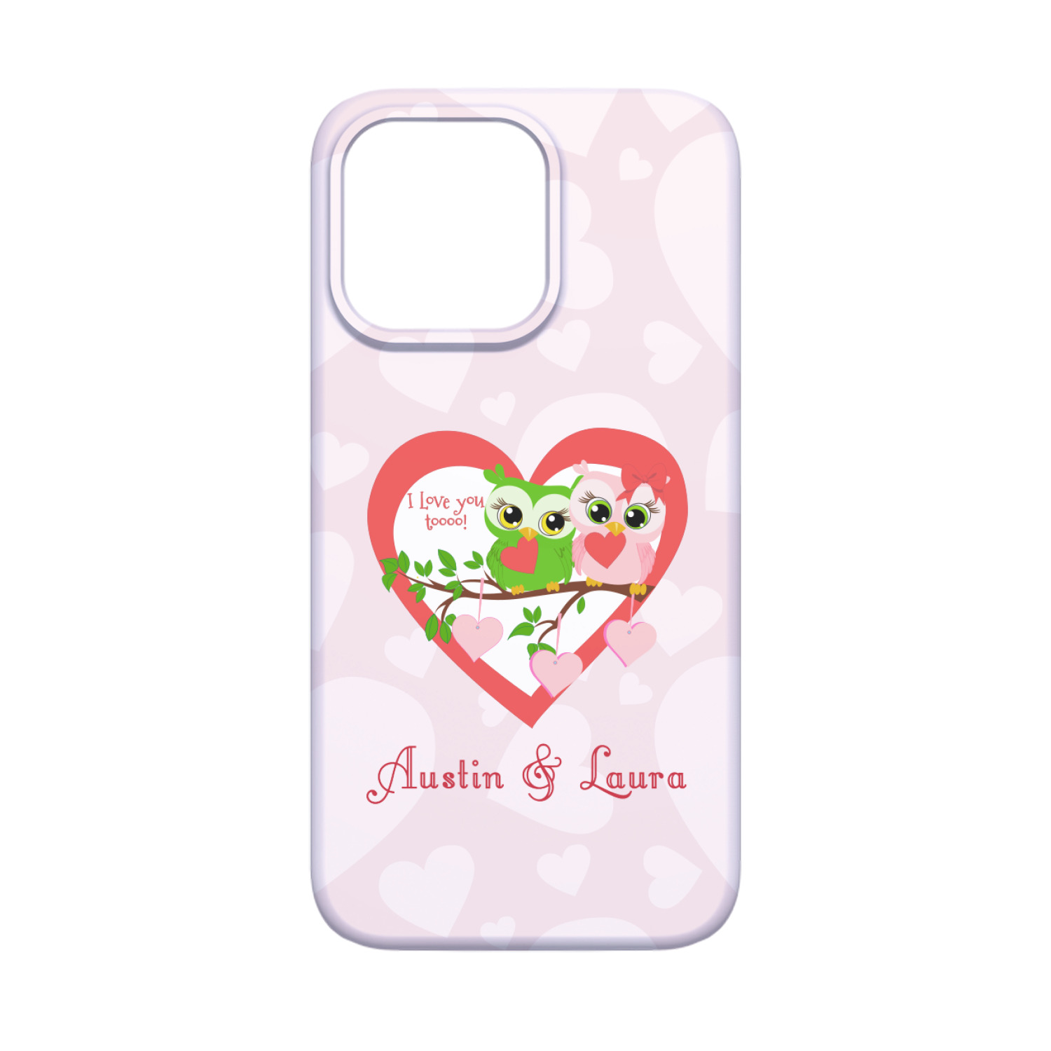 This sweet design, complete with adorable owls hooting to each other, "I love you toooooo!," is sure to make her heart melt. With white hearts on a pale pink background, it is just perfect for Valentine's Day.