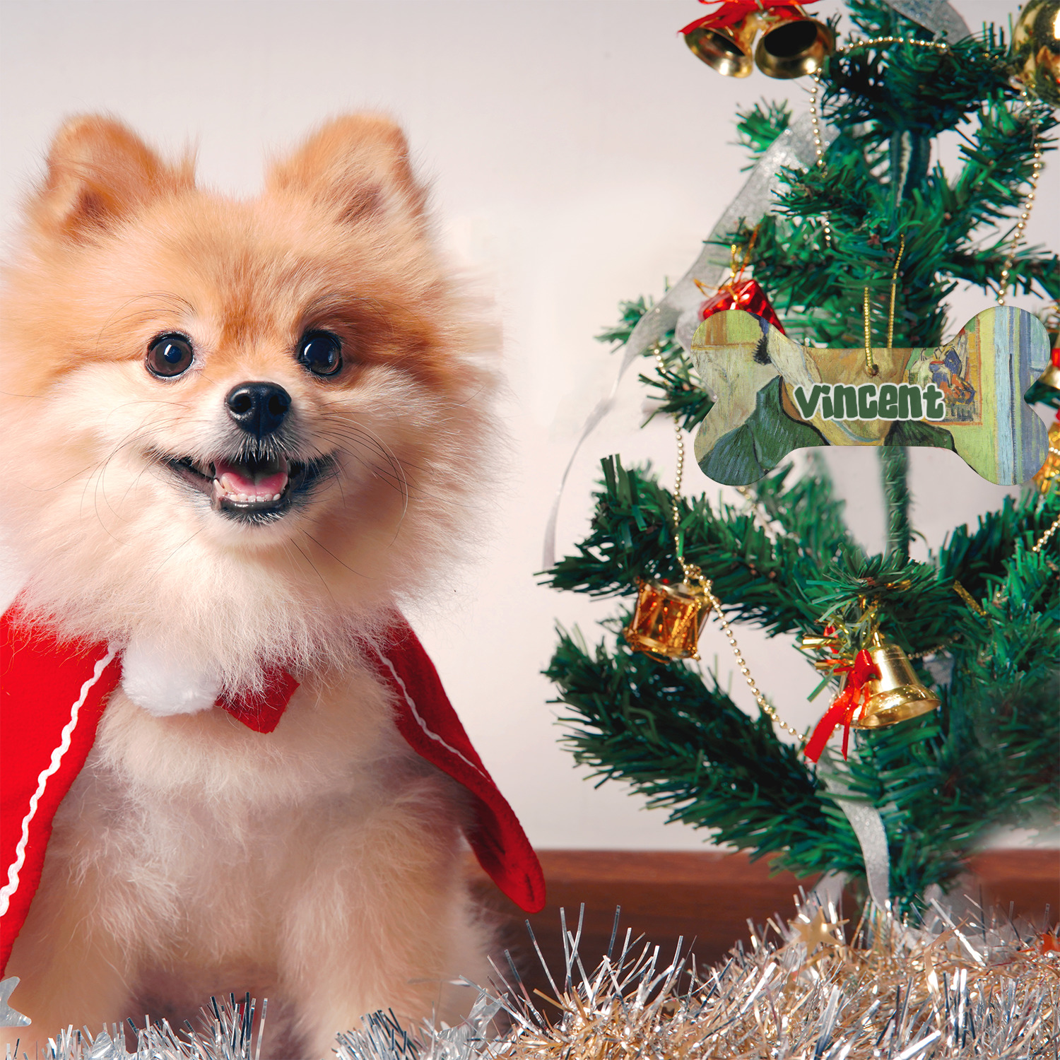 Pets are part of the family, too! Show off your puppy love by creating a personalized ornament for them this Christmas! You'll have their tails wagging hanging up their own custom dog bone ornament! Our customizable ornaments are more than just decorations for the holidays. Use the dog ornament as a nameplate, unique photo frame, or more! Start personalizing your dog ornament today with our online design studio. We offer customizable designs, or you can upload a photo for us to print!