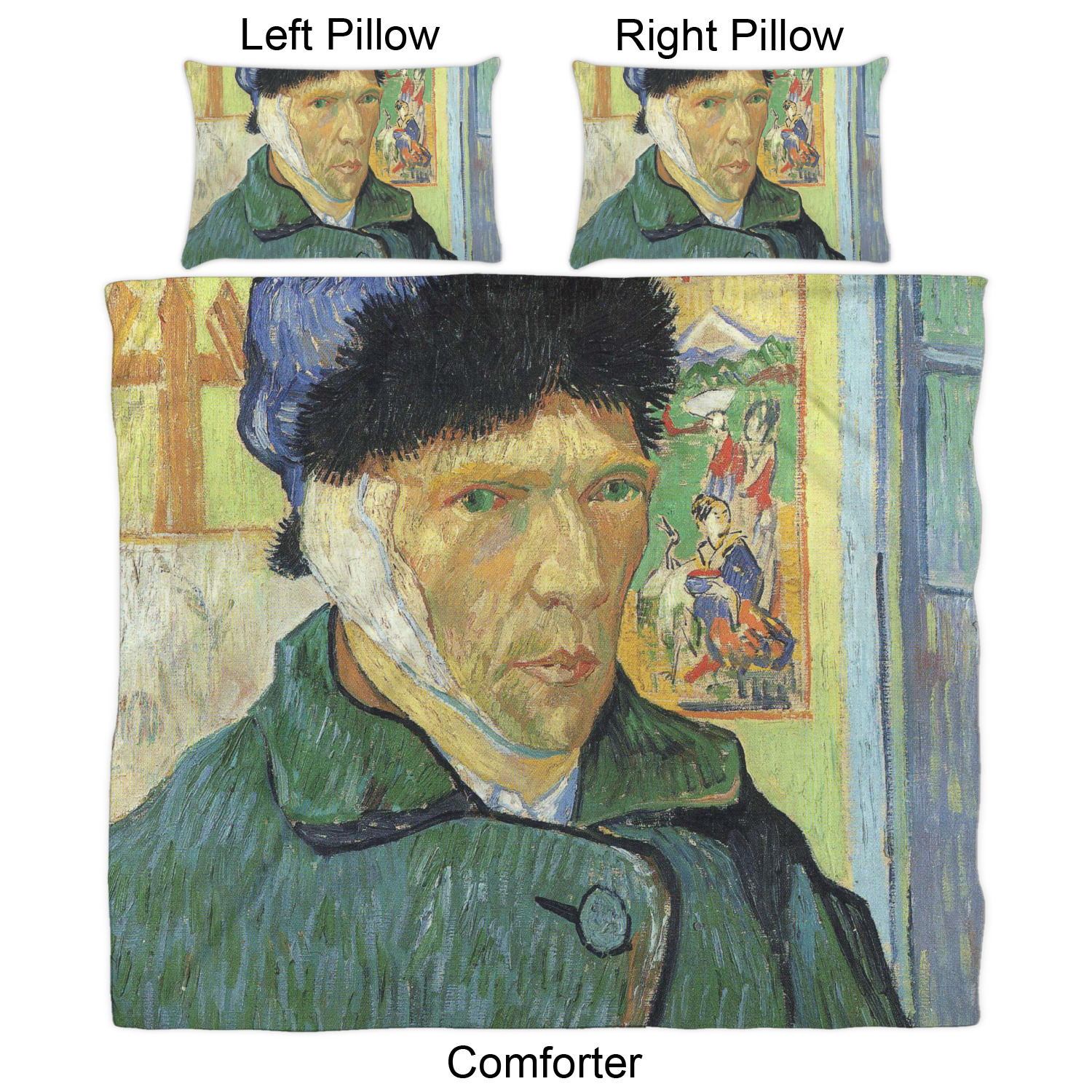 Both, the comforter and shams are digitally printed; all the fabric is then cut and sewn to make your custom comforter or comforter set.