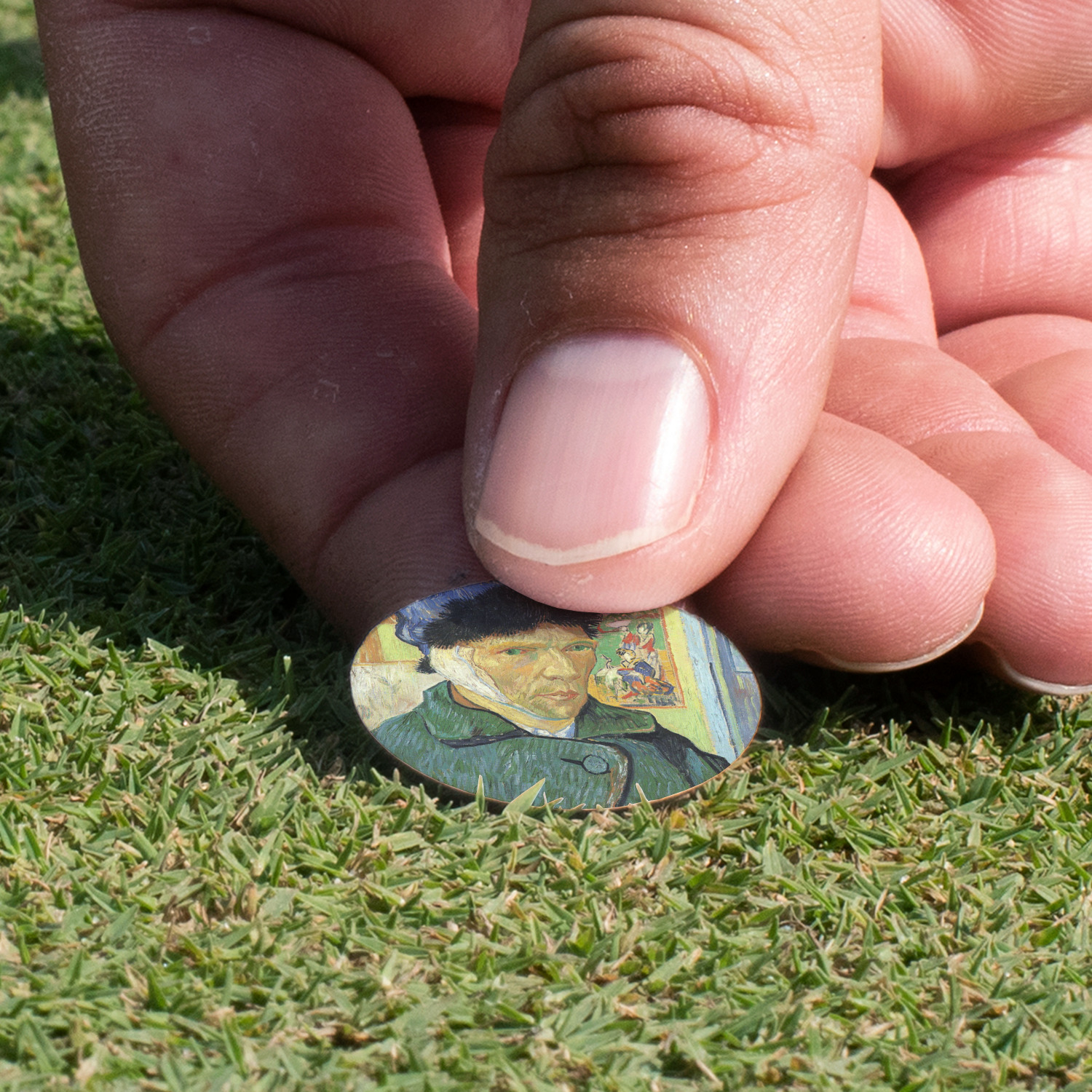 This round shaped little clip is simply 1.25" x 1.5". A clip wraps around to the back of the ball marker holder in order to be able to clip it to the bill of your hat or even your belt. The metal ball marker attaches by a magnet on the clip. Available in stainless steel natural finish or gold finish, you are sure to find one to suit your style. This makes for convenient removal when you need to use it. No more digging in your bag or pockets trying to find it!