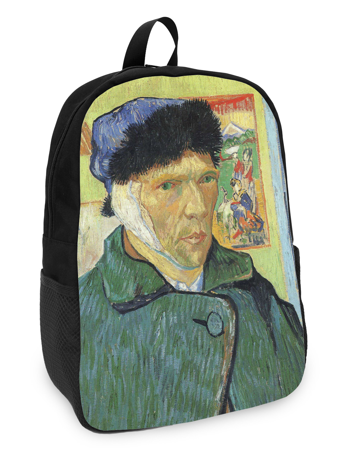 These small backpacks are made of a durable black canvas material with your personalization right on the front. The two shoulder straps are padded and easily adjustable. The bag itself measures at about 11" W x 15" H x 5" D. It's the perfect size for elementary aged kids or adults who want a smaller backpack. On the top of the bag you will find a handle to hang or carry your backpack by as well as a large zipper closure to keep all of your belongings safe inside. On each side of your backpack is a mesh pocket for a small item or water bottle. Inside your backpack you will find a spacious area with a small zipper pocket and a padded laptop slot that will fit up to a 13" laptop (13" being very snug). This is the perfect bag for any student that needs a couple books and their laptop with them at all times. It also works great as a carry on for traveling!