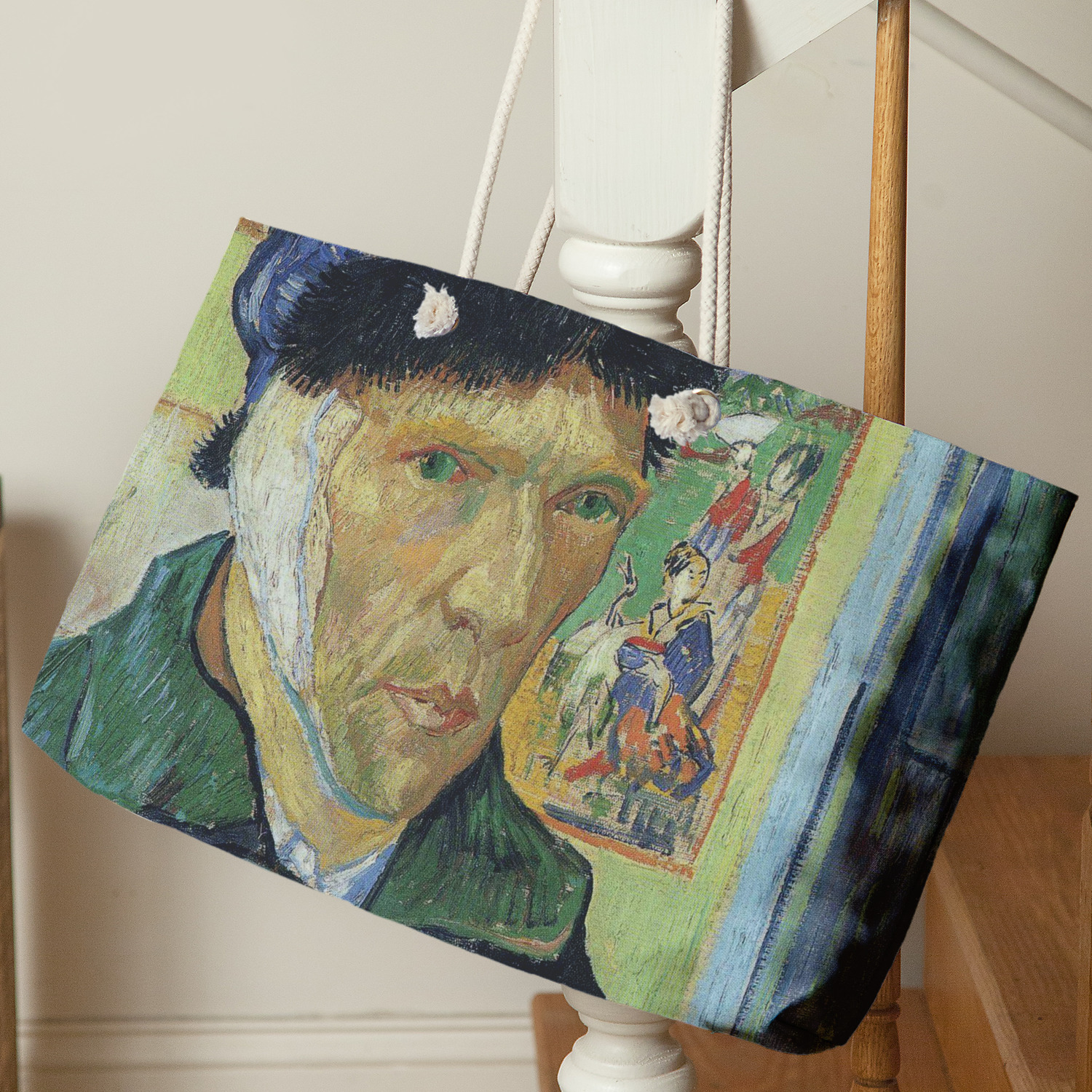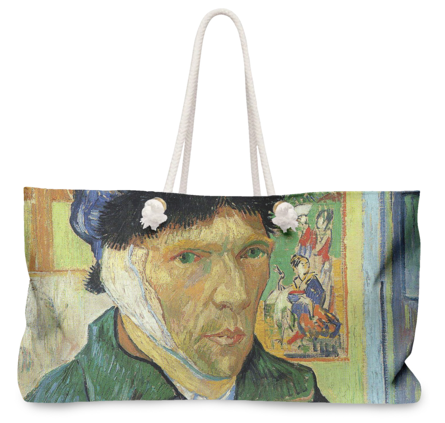 These weekender totes can be customized front and back. The totes are full all over print - so the choice of how background are endless - from beautiful floral or leaf patterns to geometrics or some classic Van Gogh artwork - the possibilities are endless. The totes can also be decorated with photos and logos.