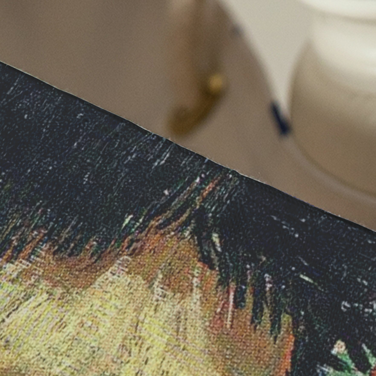 These large totes are handmade i.e. printed, cut and sewn right here in the USA. The canvas like material is printed using dye sublimation; the fabric is then cut and sewn along with a beautiful cream colored lining (to match the rope handles). The brass grommets are then added and the cream colored rope if fed through the grommets and knotted.