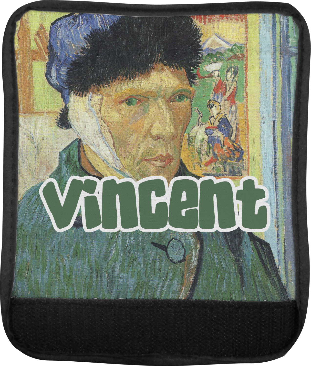 The luggage handle covers are made of neoprene with black trim and have Velcro closure to snugly fit around the handle. Your design is printed on the neoprene. The covers measure approx 5"x6".