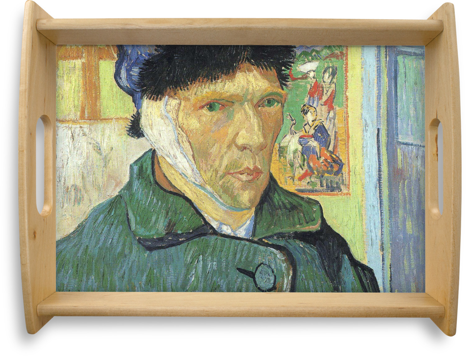 This serving tray with handles features square edges and two rounded sides, creating a very modern look. Each side is fabricated from a beautifully cut, natural wood. The bottom of the interior of the tray displays your customized design in bright, vibrant color. The tray is sold in both a black color and a natural wood look. Each variation of the wood serving tray has two sizes: Small, which is 14" x 10" x 2.25", and Large, which is 19.5" x 13.5" x 2.75".
