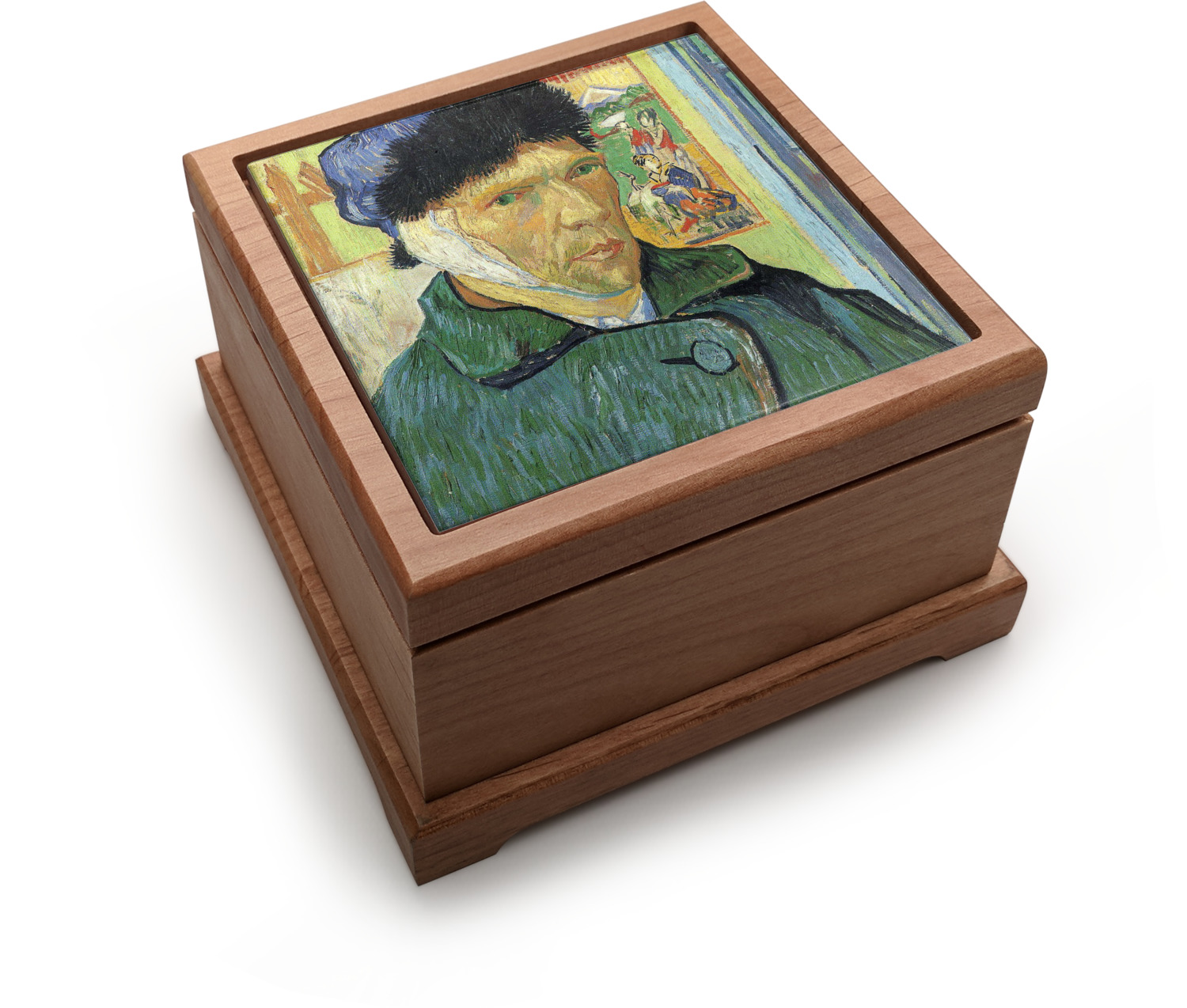 Our beautiful pet urns, shaped as decorative square boxes, are built from fine, red alder wood. The urn's bottom unscrews easily, with a screwdriver, allowing you to safely place your pet's ashes inside. The inner dimensions of the urn measure at 3.5" long, 3.5" wide, and 2" deep. The external base of the urn measures at 5.5" x 5.5", while its height is 3.5". We display your pet's picture, dates of living, or any other desired customization atop the ceramic tile that covers the top of the urn.