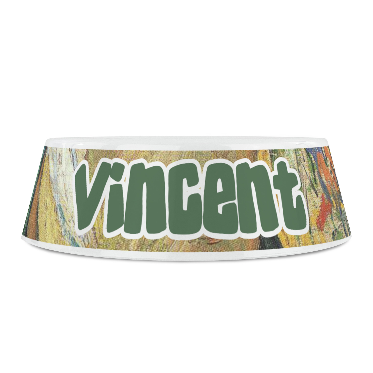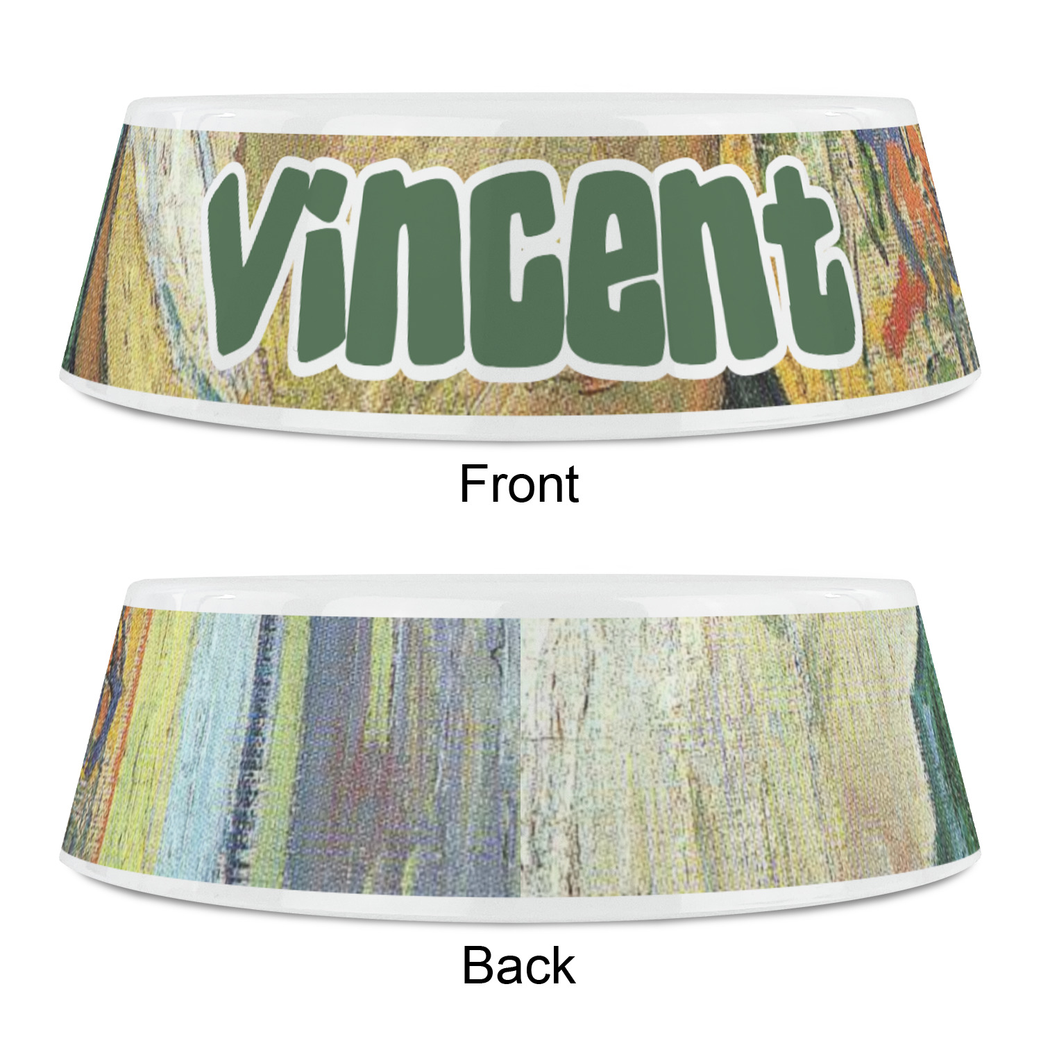 Made from a nearly indestructible composite polymer plastic these bowls come in 3 different sizes to suit any breed of dog. The small bowl measures approximately 5 in diameter and 1.75 tall and holds approximately 1.5 cups of food or water. The medium bowl measures approximately 6 in diameter and 2.25 tall and holds approximately 3 cups of food or water. The large bowl measures approximately 7.2 in diameter and 2.25 tall and holds approximately 4.5 cups of food or water. These bowls are microwave and dishwasher safe so no matter what type of food your dog eats it can be easily cleaned up for the next use. Design your own or use one of our 500 plus designs to make these pet bowls uniquely yours.