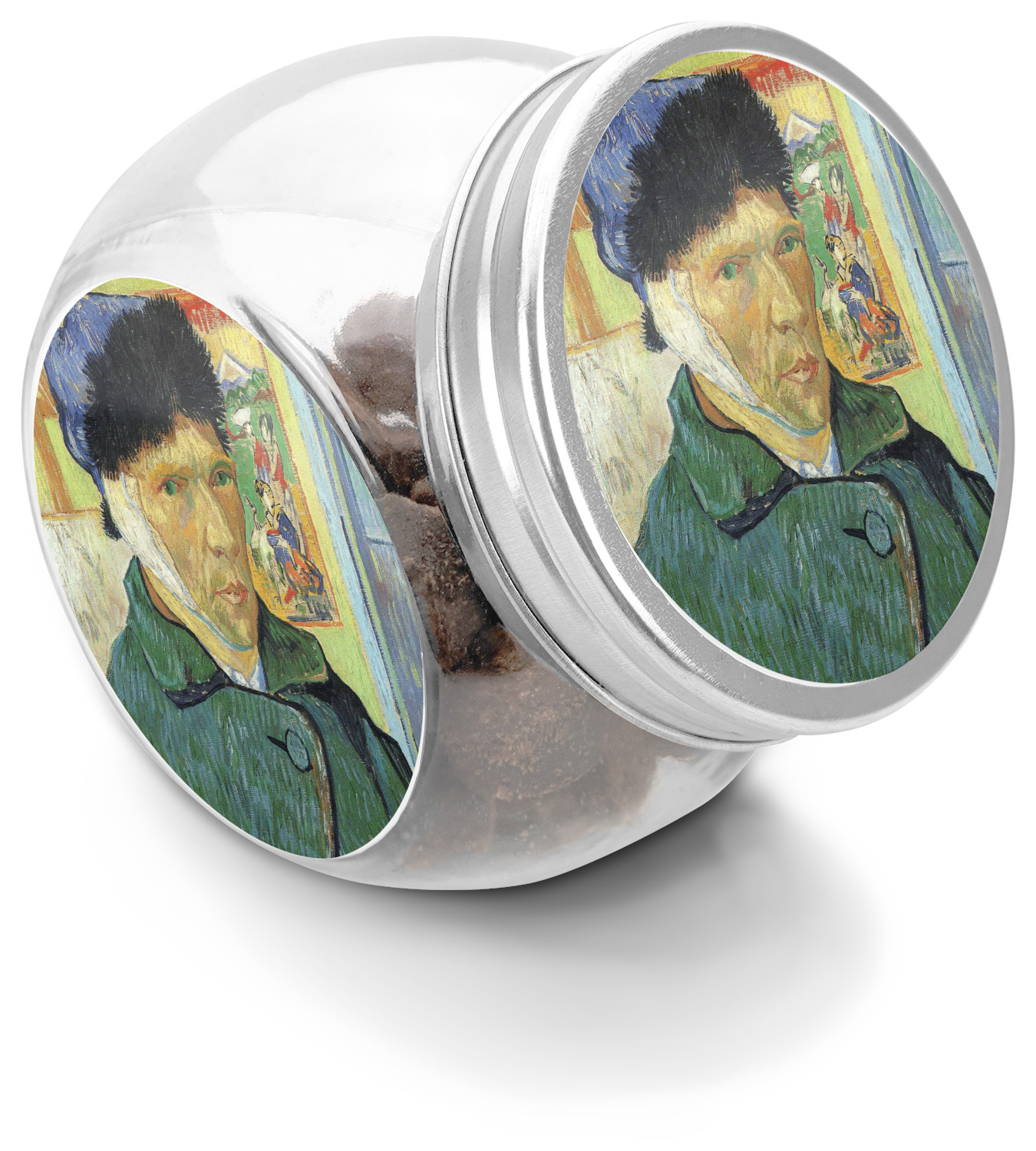 This treat jar is an excellent way to store treats for your favorite canine or feline. Moreover, their delicate, classy appearance makes them a tasteful addition to your countertop's décor. Crafted from clear glass, its unique construction and silver metal, screw-on lid allows for quick and easy access. Three, permanent, vinyl stickers are applied to both sides of the jar and lid, presenting your personalized design. The base of this glass, dog treat jar is 3.4" x 4.75", and the jar stands at 5" tall. Though on the smaller side, this jar is best suited for smaller treats or training treats.