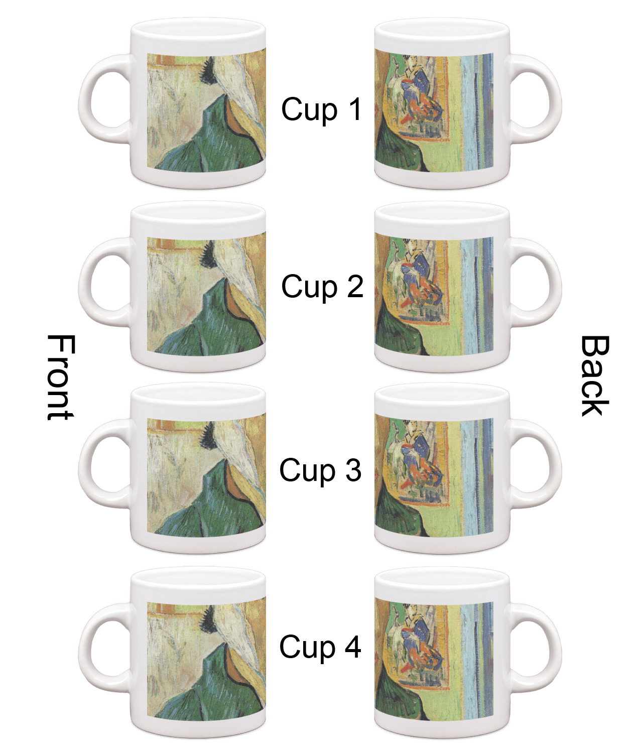 Each of our espresso mugs is a ceramic material sure to keep your drink warm. Personalize one cup for yourself, or order a set of 4! Its the perfect little gift for any coffee lover! We carry two sizes for you to personalize - 3 oz. (approx. 3.25" x 2.325" x 2.625") or 6 oz. (approx. 4" x 2.9" x 2.9"). Our 3 oz. mug is perfect for that single shot espresso while our 6 oz. mug can be your next favorite cappuccino cup holding two shots of espresso!