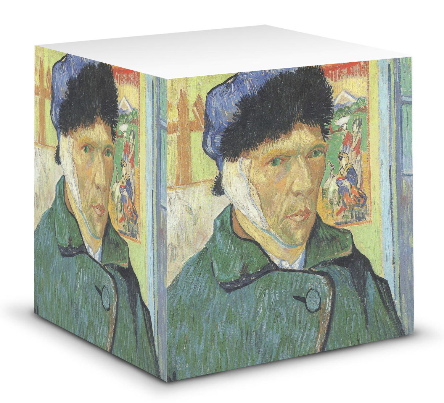 This note cube features 700 sheets of matte, white paper. Each sheet measures at 3.5 by 3.5 inches and has an adhesive strip at its top. Your personalized design is displayed on all four edges of the sticky pad.