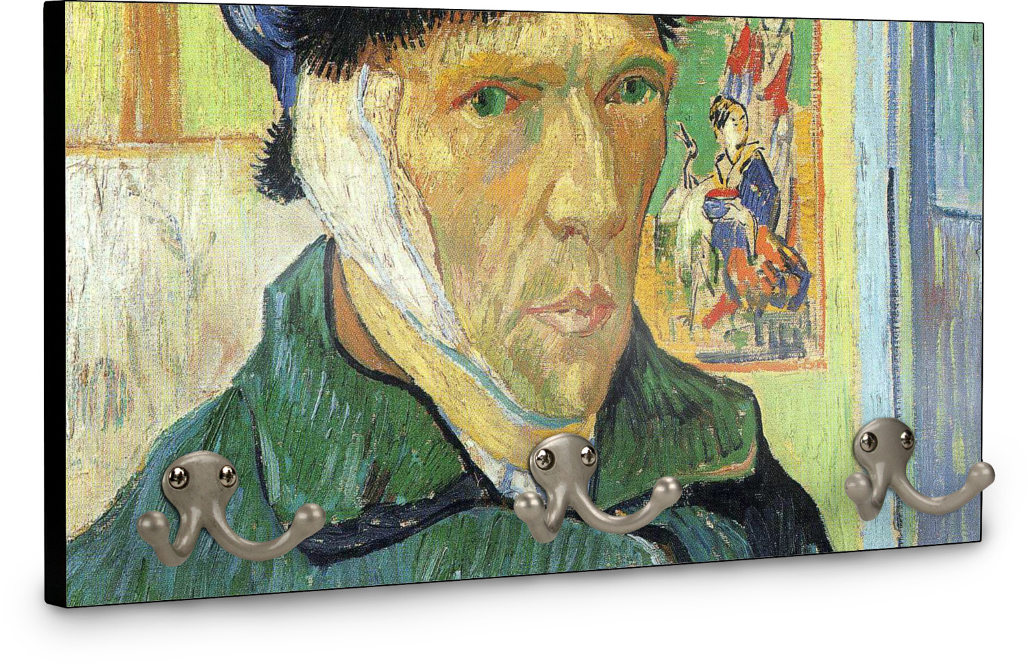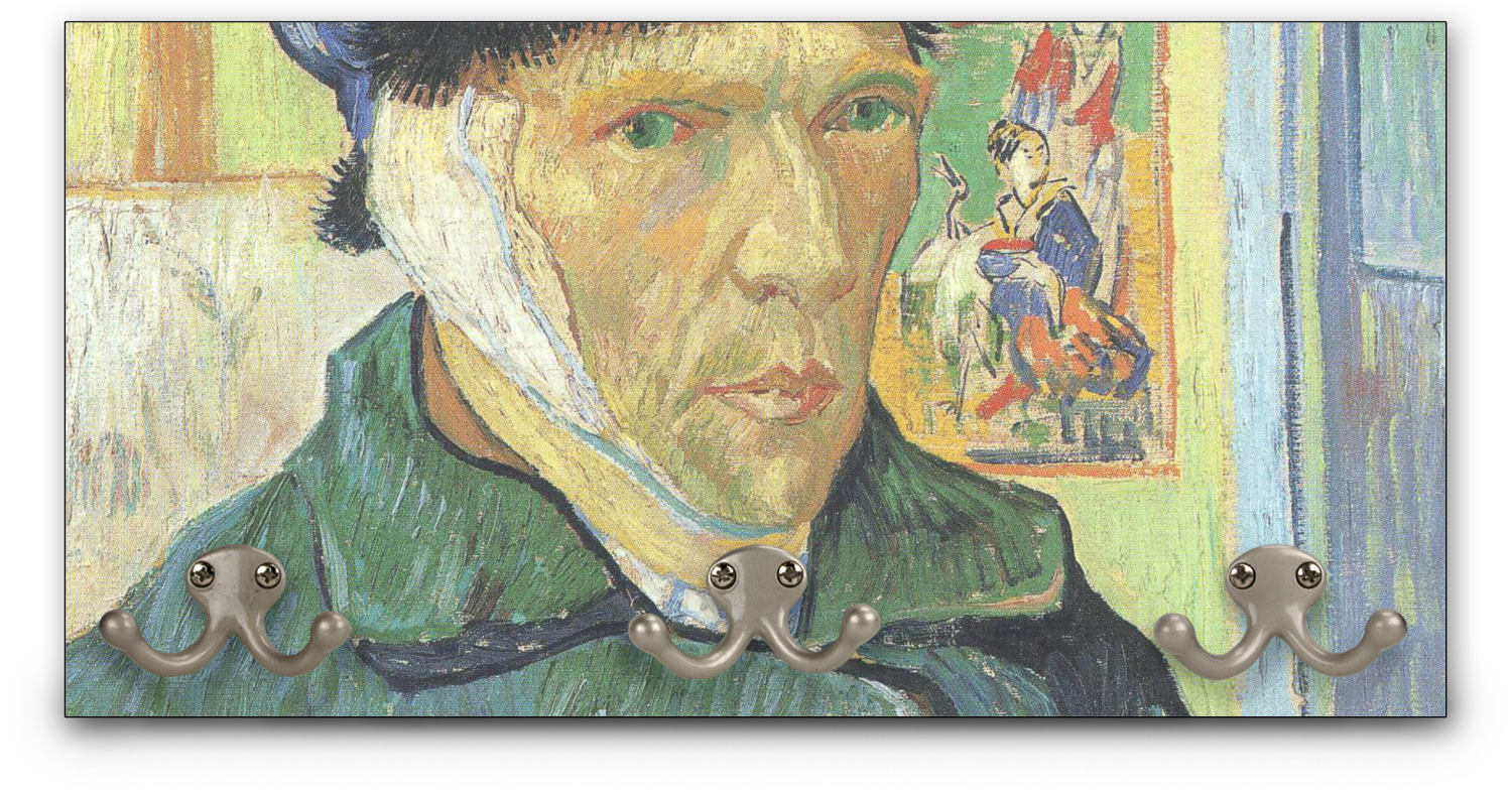 This coat rack is the perfect way to add some personality to your wall or entryway. The board is made of a strong maple that is approximately 16" x 8". The three 2-prong hooks are a sturdy metal that have three screws attaching them to the board. Your design is printed right onto the front of the board while the back and sides are a simple black.