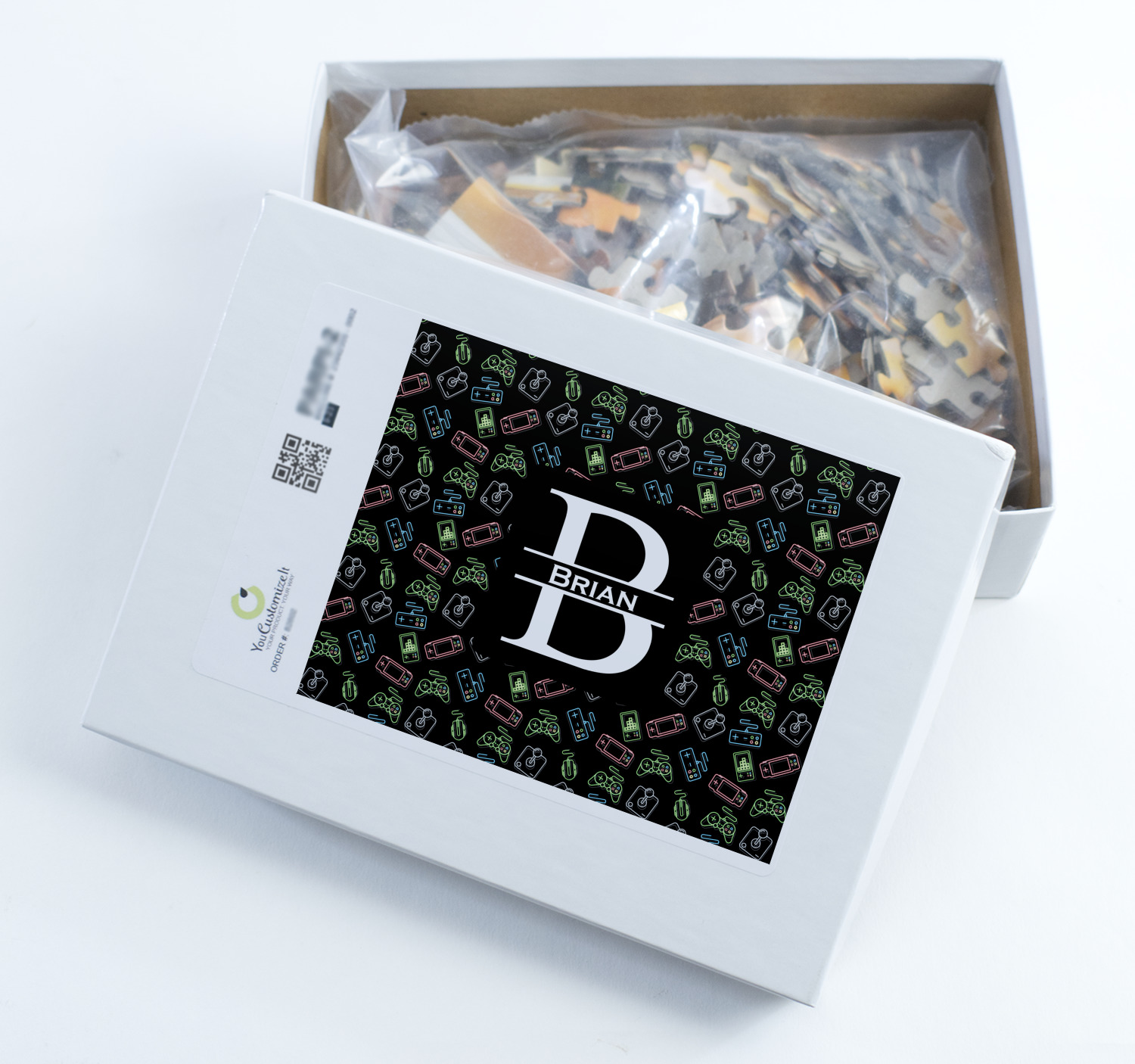 You can also upload your logo or art that you or your kids drew. To create more challenging jigsaw puzzles, you can create a pattern from with your logo or artwork. You can also add other elements such as text or personalization.