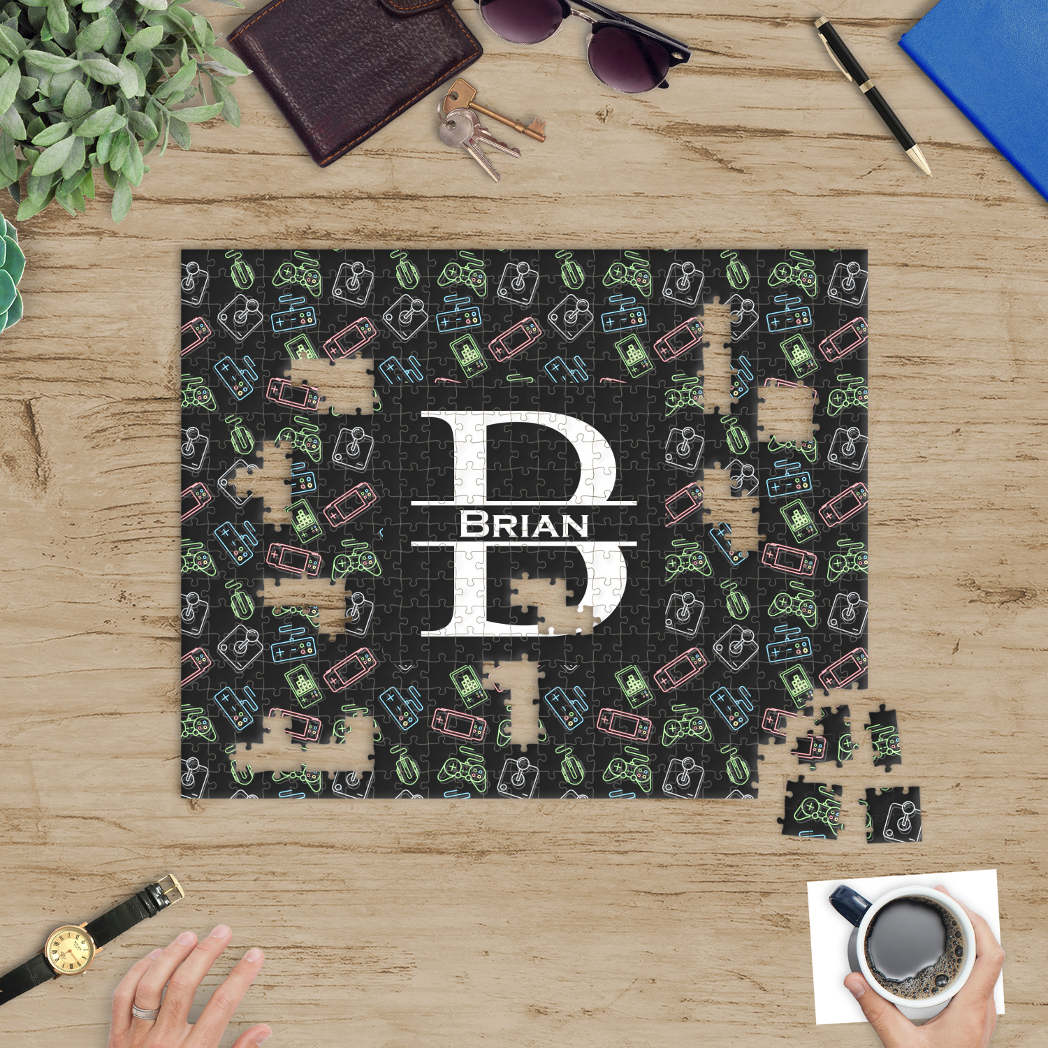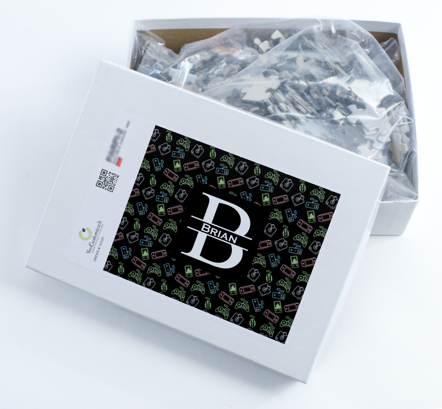 You can also upload your logo or art that you or your kids drew. To create more challenging jigsaw puzzles, you can create a pattern from with your logo or artwork. You can also add other elements such as text or personalization.
