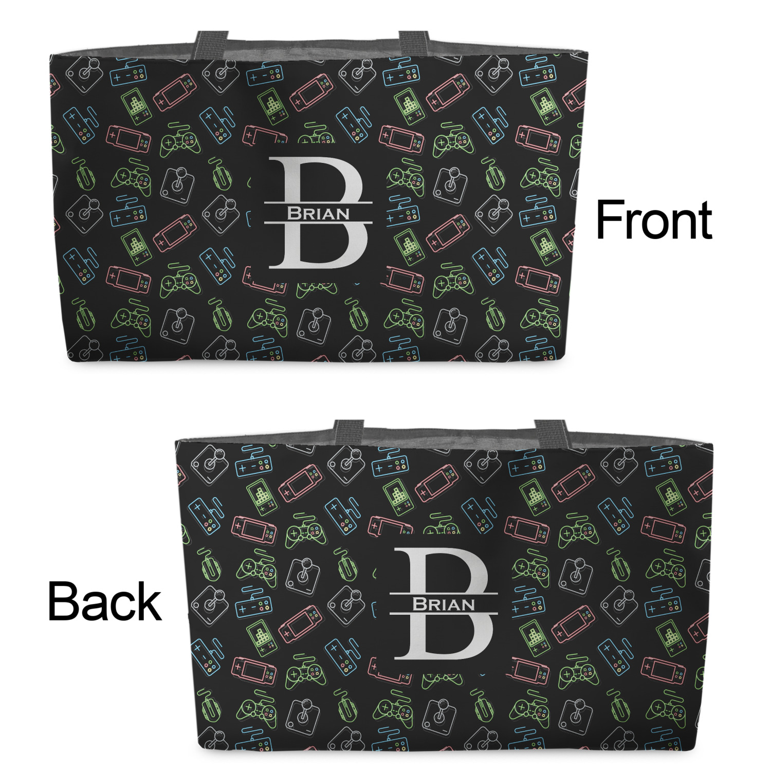 You can design the totes with a design on the front and another one on the back. The two designs can be identical or completely different. The choice is yours.