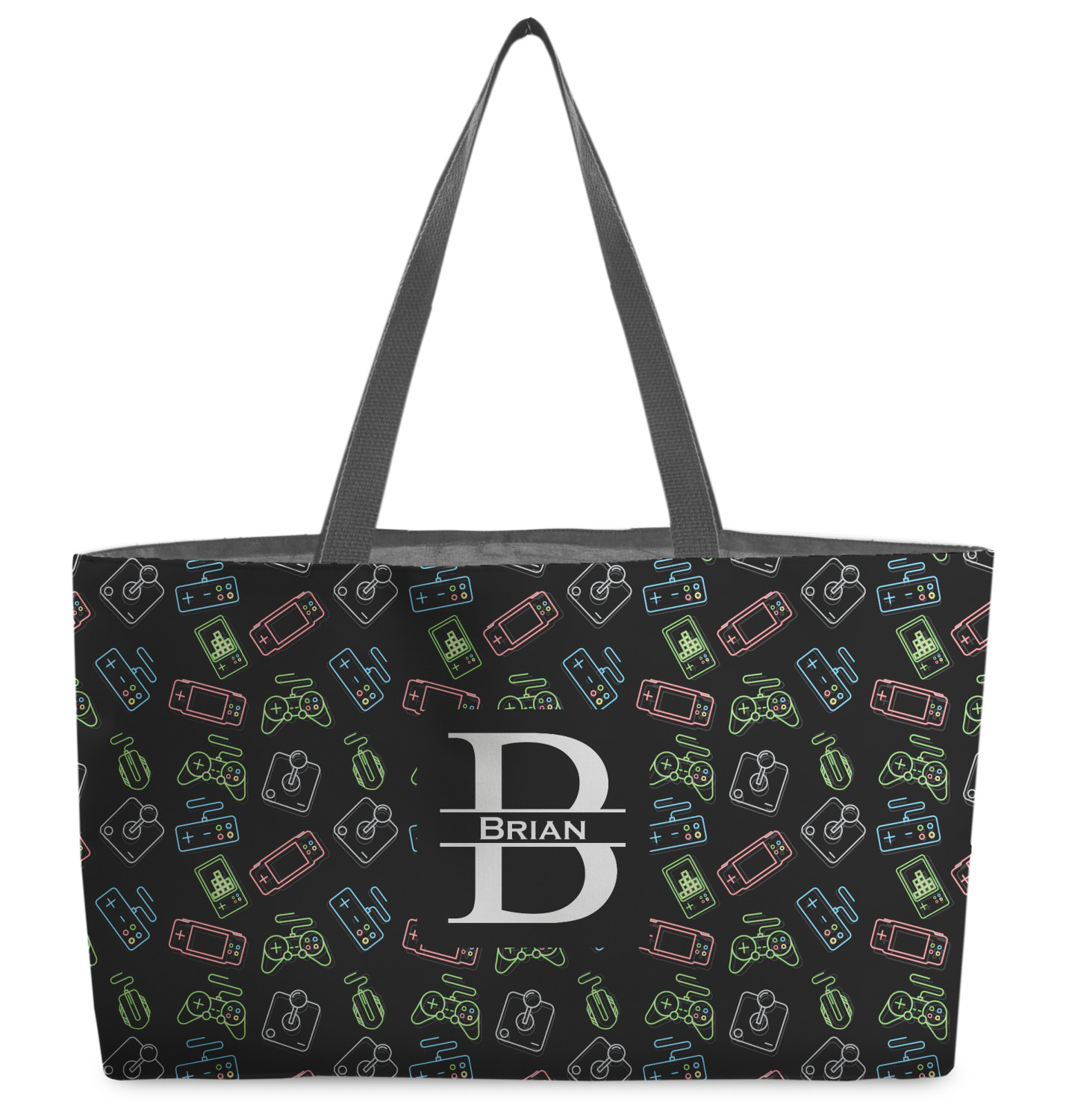 The totes are made from a sturdy canvas material on the outside and are lined with a black poly cotton lining. The beach totes have an approx. 28" black woven handles.
