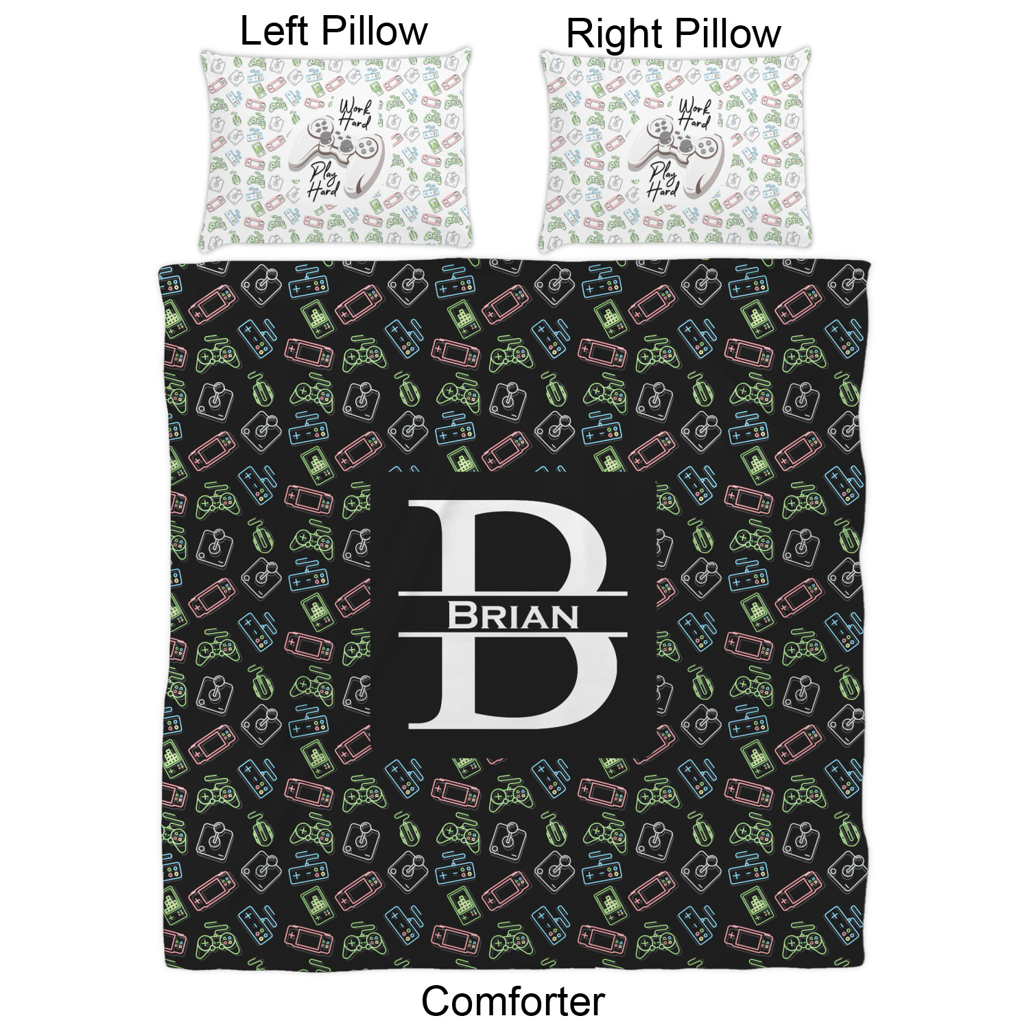 We have hundreds of different design templates for you to choose from Each design can be customized to your exact specifications. Not only can you customize the comforter, but you can also customize each pillow sham e.g. for a queen comforter set you have have Mr & Mrs pillow shams with the last name on comforter.