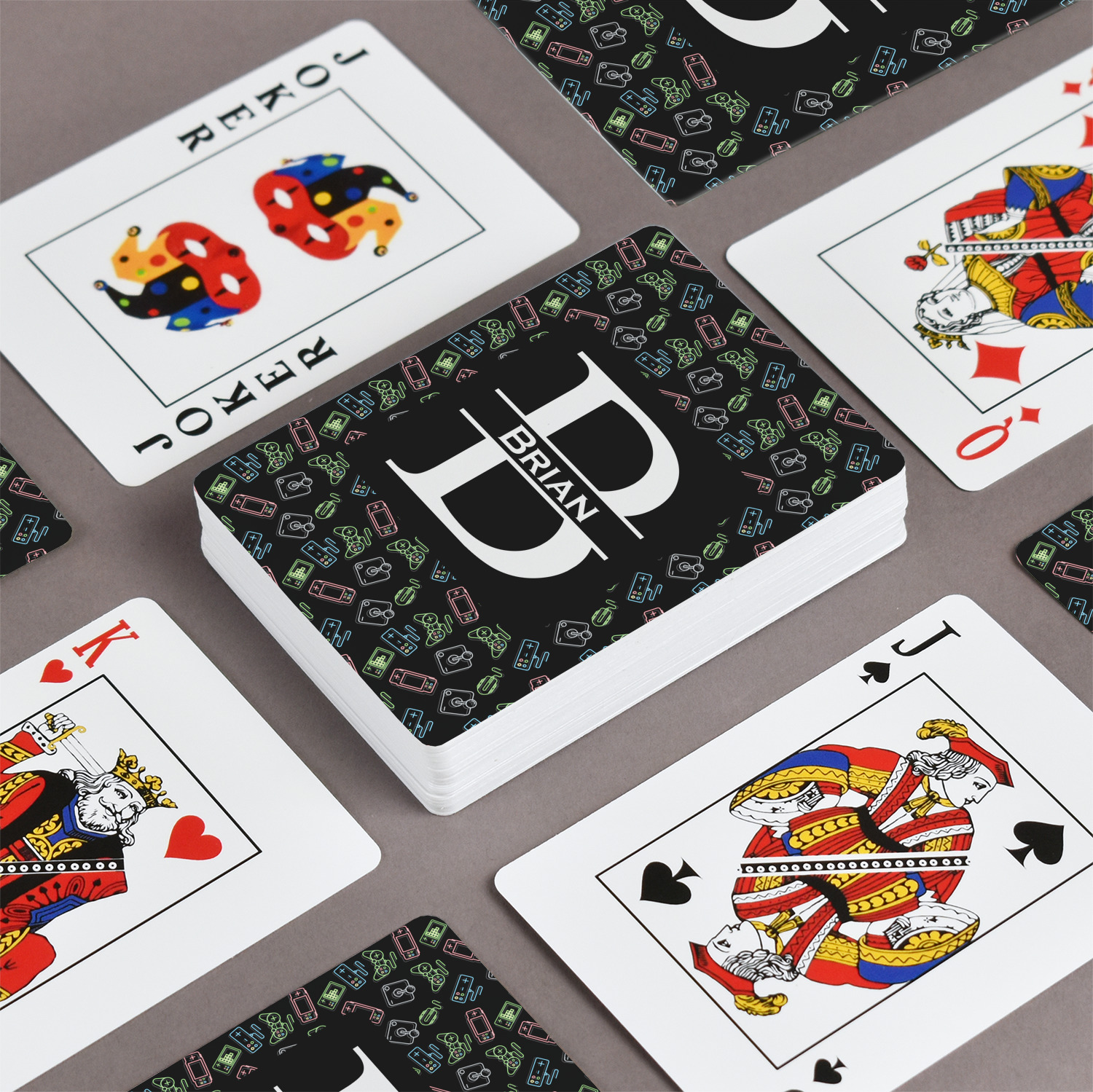 Our playing cards are perfect for family game nights or poker nights. A deck of customized playing cards ups the level of fun & entertainment to your game or poker nights. Imagine playing cards customized to match the theme of your game room, or game night, or that special event, or occasion with gambling tables!