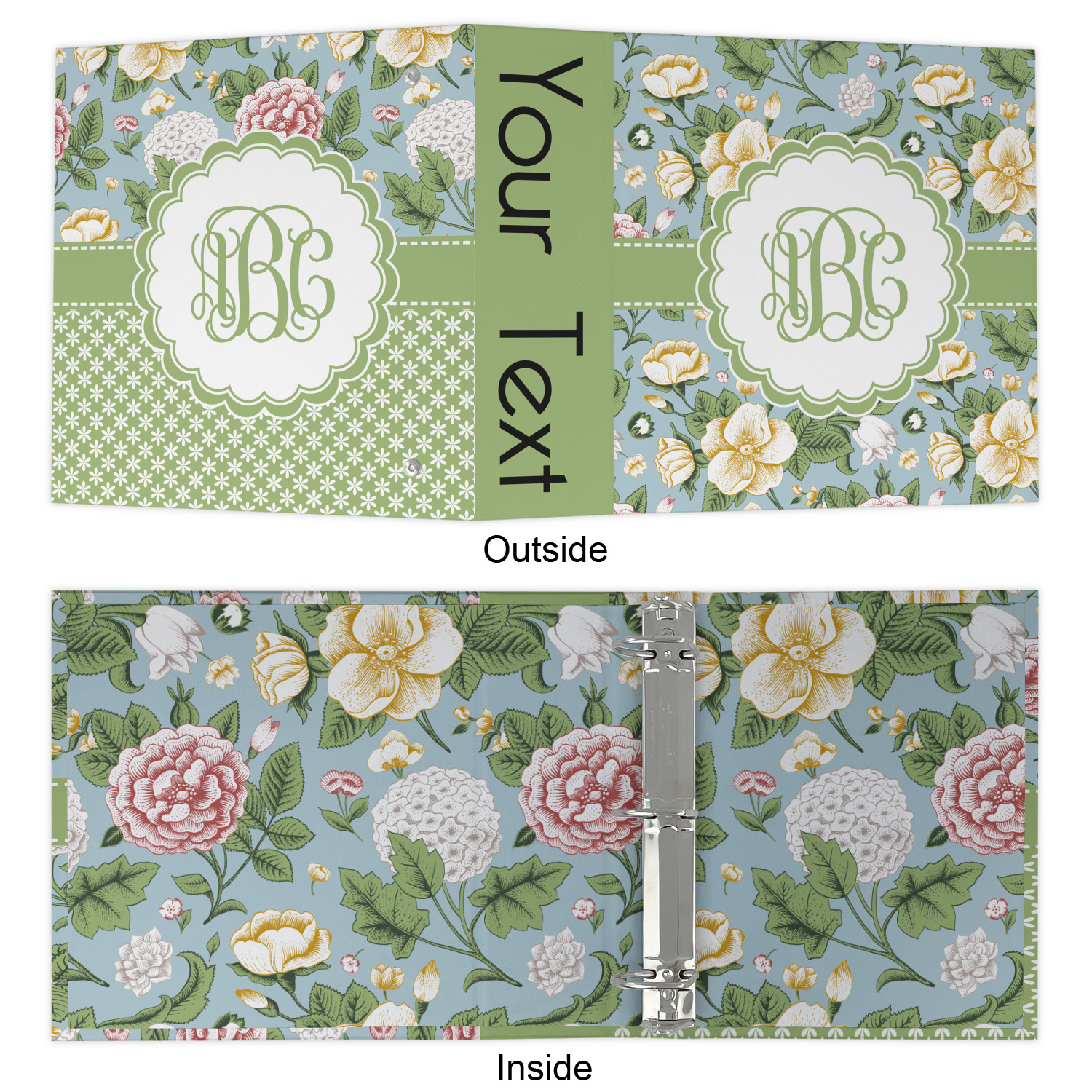 Made from a sturdy cardboard base with a full high quality canvas textured vinyl wrap with the design of your choice. Unlike our standard 3-ring binder with the full wrap design your artwork wraps from the front and back and into the inside of the binder.