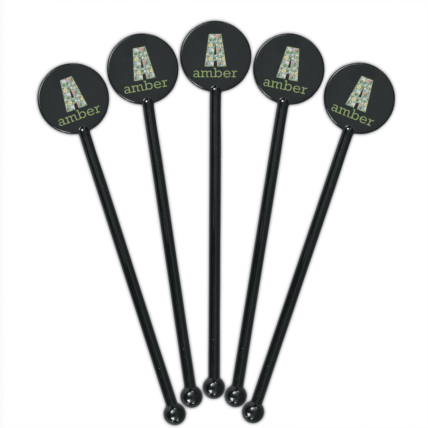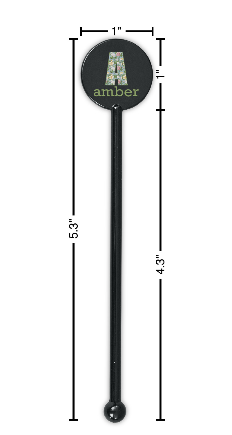 Vintage Designs for 5.5" Round Plastic Stir Sticks - Black - Single-Sided