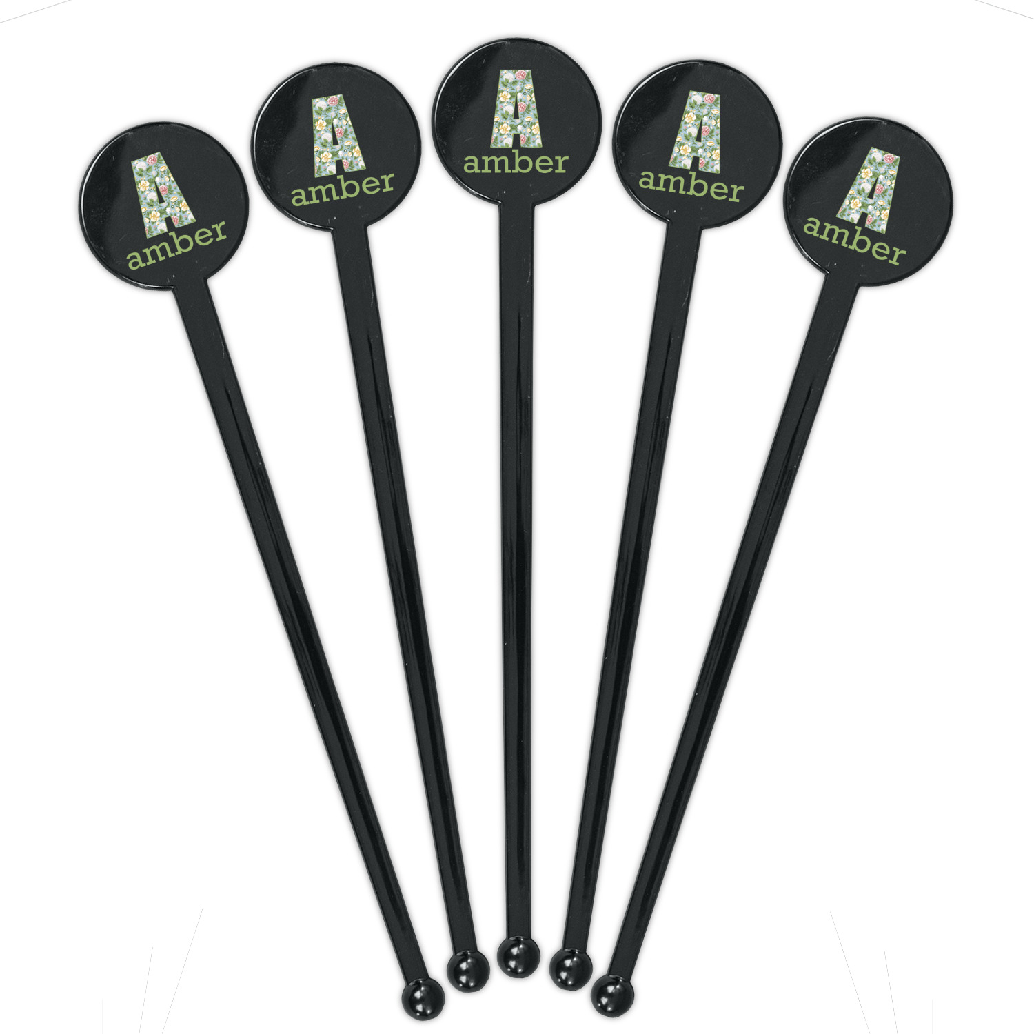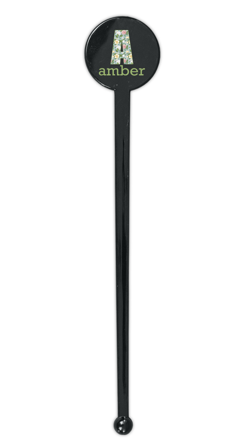 Vintage Designs for 7" Round Plastic Stir Sticks - Black - Double-Sided