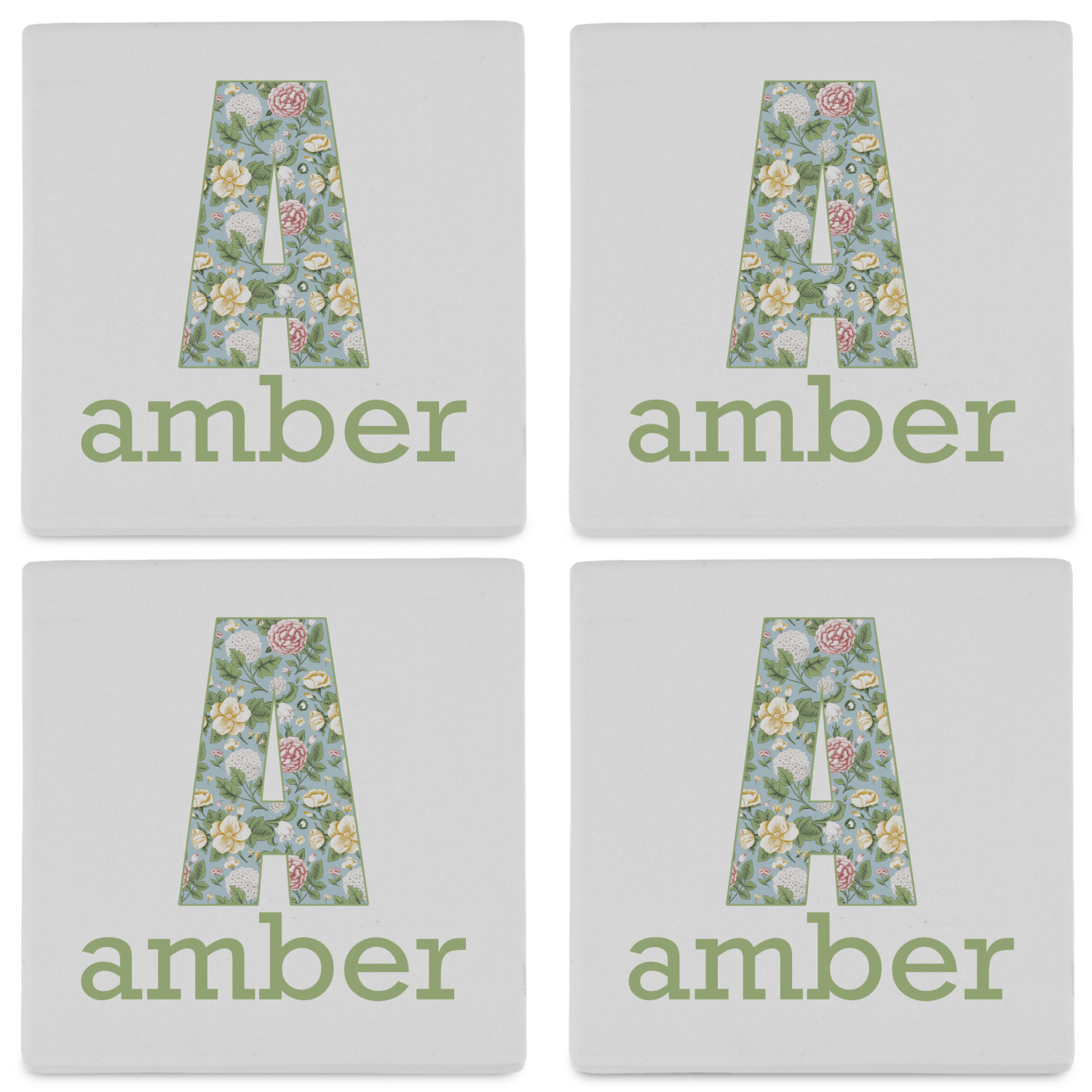 By default, the 4 coasters all have the same design on them, however, you can change that and have a different design on each one of the 4 coasters. The choice is yours.