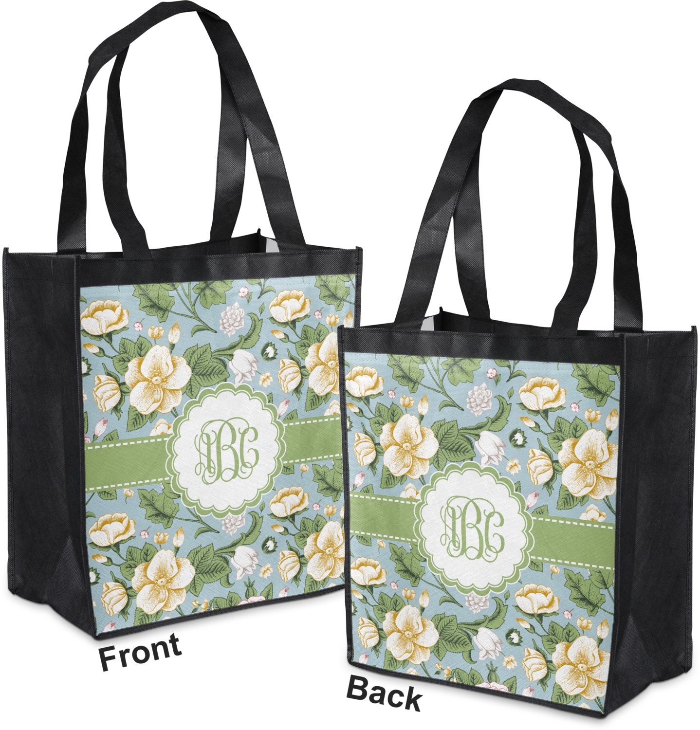 Made from a durable, biodegradable material, these reusable shopping bags can support up to 30 pounds of weight. With two large handles, measuring at 8.5 inches each, these personalized tote bags are easy to carry to your vehicle or home. The bag itself is 12 by 13.5 inches, and can expand to a depth of 7 inches. Your customization is printed on both the front and back, while the remaining sides, trim, and handle are a sleek, charcoal black.