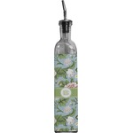 The vintage flowers in this design are cream colored magnolias, surrounded by olive green leaves on a demure blue background. The design has a classic ribbon in olive green trimmed in white. The decorative scalloped label is in white and is the perfect place for your monogram for that personal touch to pull the entire design together.