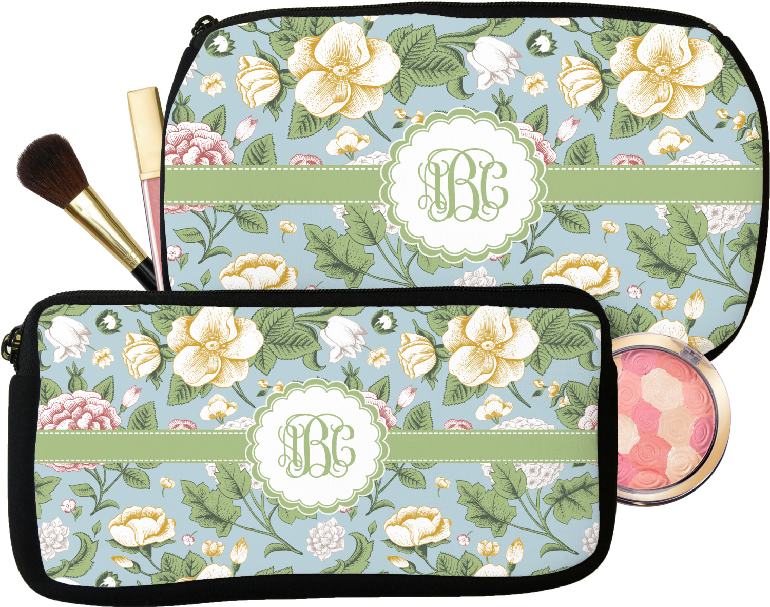 Every girl and woman carries makeup and cosmetics in her purse. Why not carry your makeup in these beautiful custom made and personalized makeup bags. These cosmetic bags also make a great bridesmaid gift.