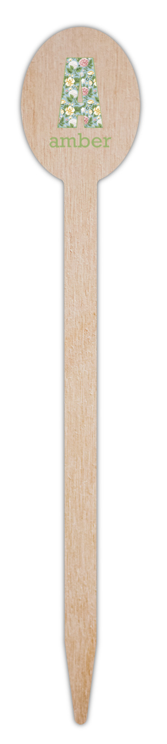 The vintage flowers in this design are cream colored magnolias, surrounded by olive green leaves on a demure blue background. The design has a classic ribbon in olive green trimmed in white. The decorative scalloped label is in white and is the perfect place for your monogram for that personal touch to pull the entire design together.