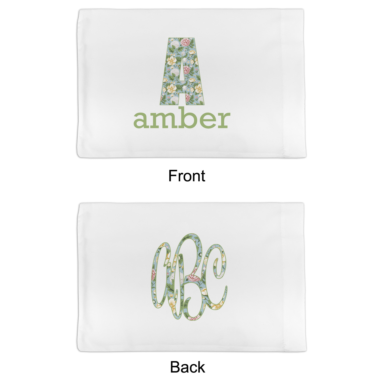The vintage flowers in this design are cream colored magnolias, surrounded by olive green leaves on a demure blue background. The design has a classic ribbon in olive green trimmed in white. The decorative scalloped label is in white and is the perfect place for your monogram for that personal touch to pull the entire design together.