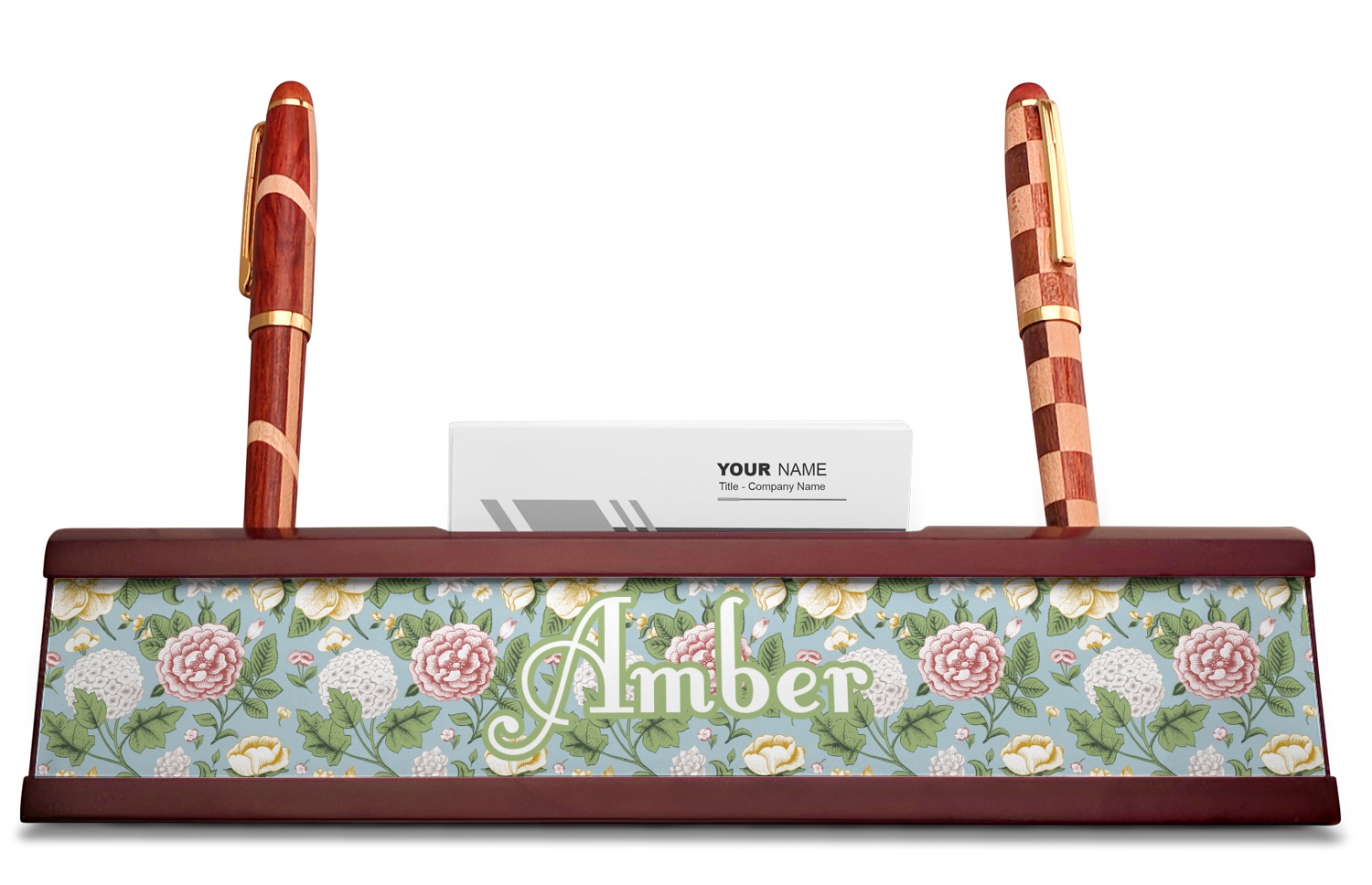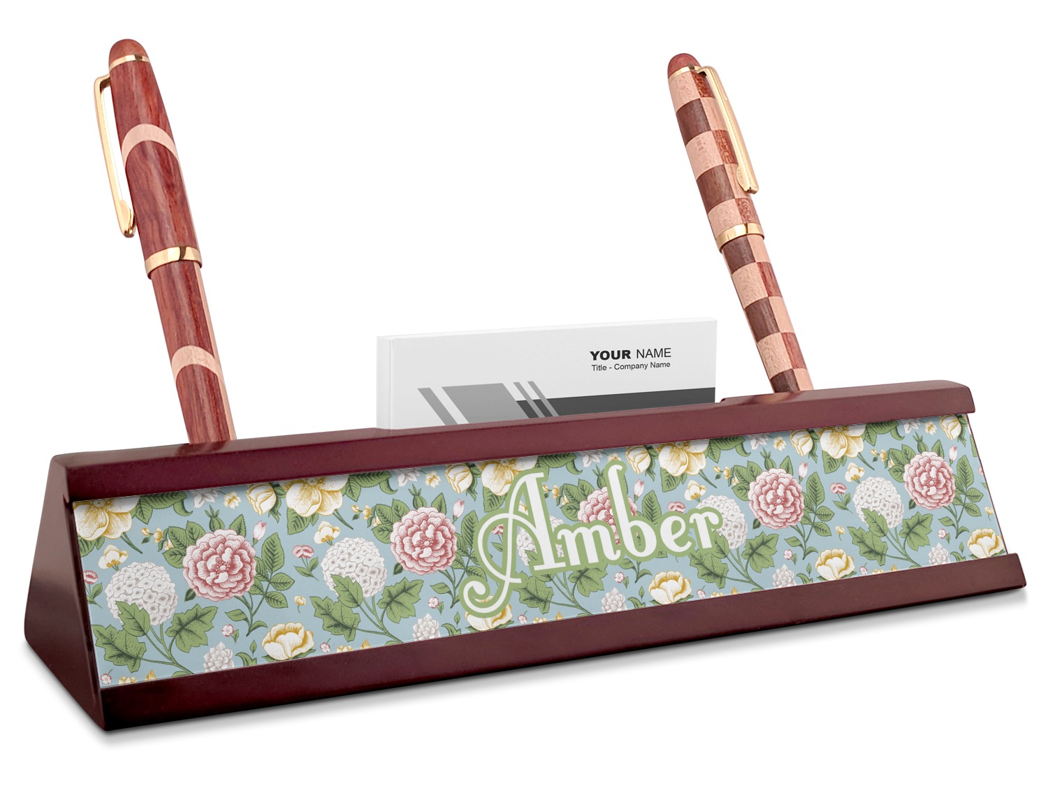 Vintage Designs for Red Mahogany Nameplates with Business Card Holder