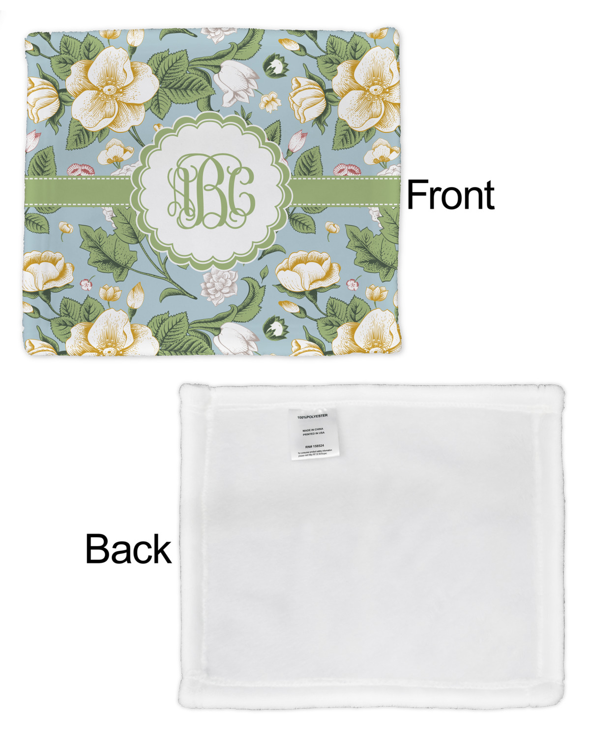 Crafted from an ultra soft fleece, these lovey blankets are the perfect, portable size to follow your child on any of his or her adventures. The plush texture also makes them ideal for naptime. Each personalized baby blanket measures at approximately 12 by 11 inches.