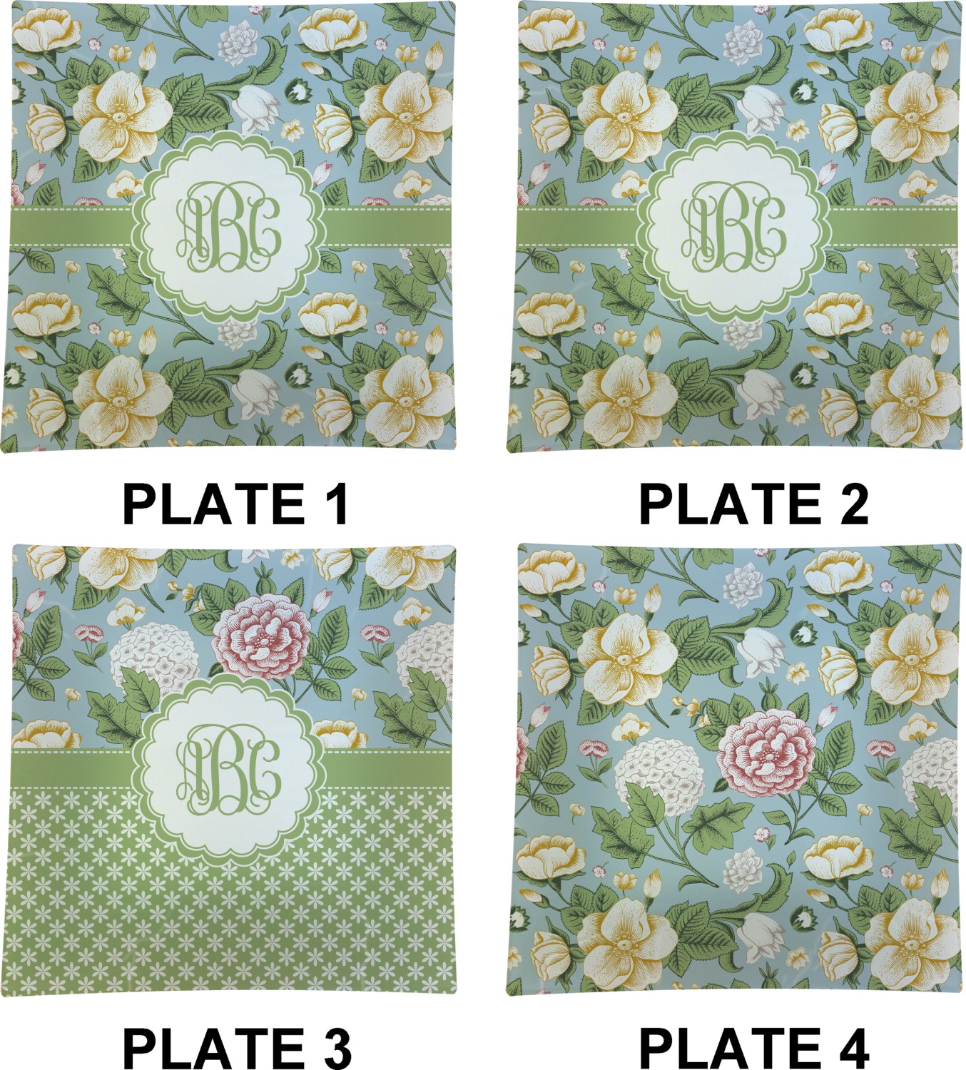 Vintage Designs for Glass Square Lunch / Dinner Plates 9.5" - Set of 4