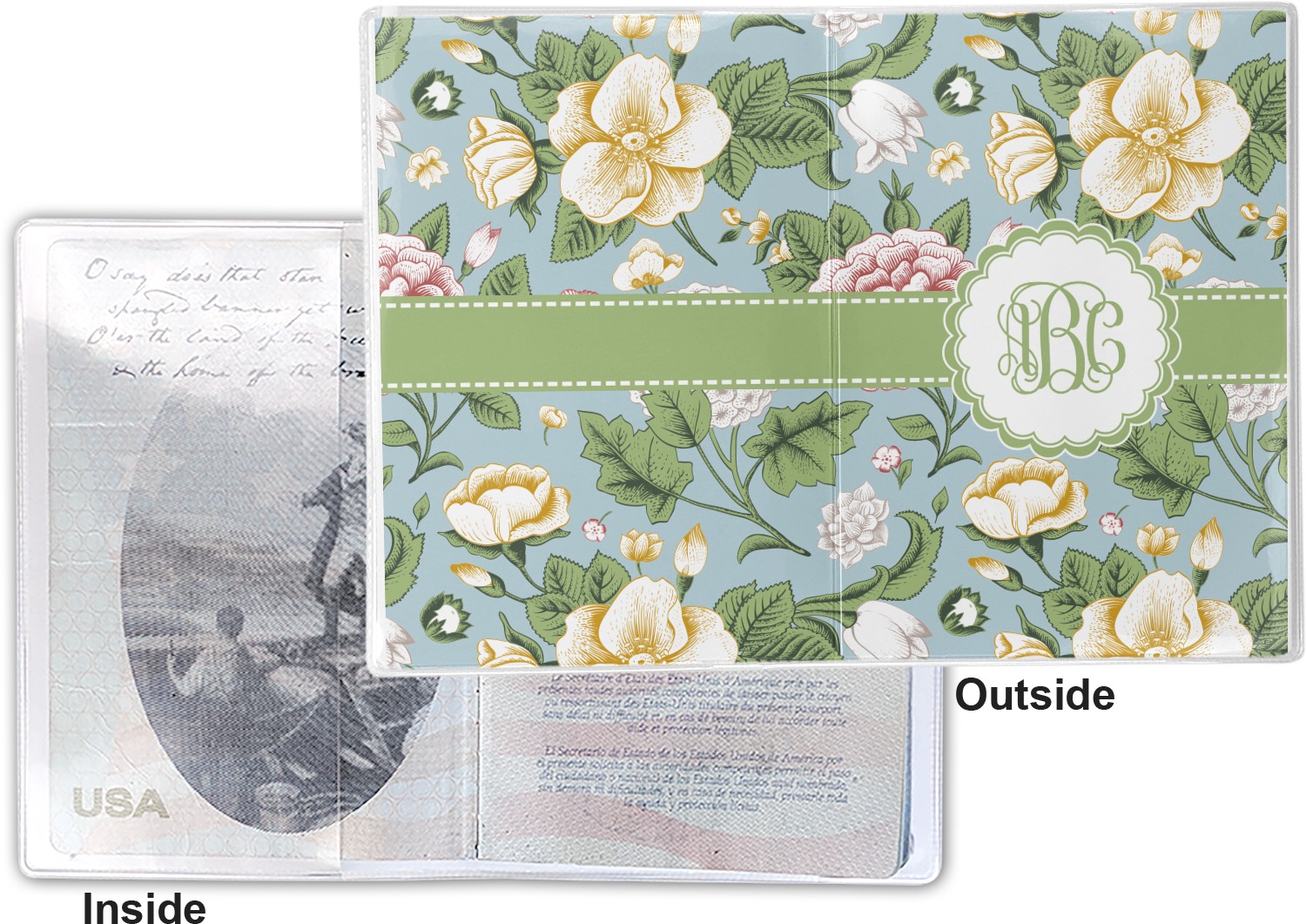This cover is made of a sturdy clear vinyl with a personalized vinyl insert inside. There is a large and a small pocket on either side to hold the covers of your passport easily and firmly. The passport holder is approximately 7.5" x 5.25", the perfect size to snugly fit your passport. This slim cover is the perfect way to protect your passport without being one more bulky item you have to carry.
