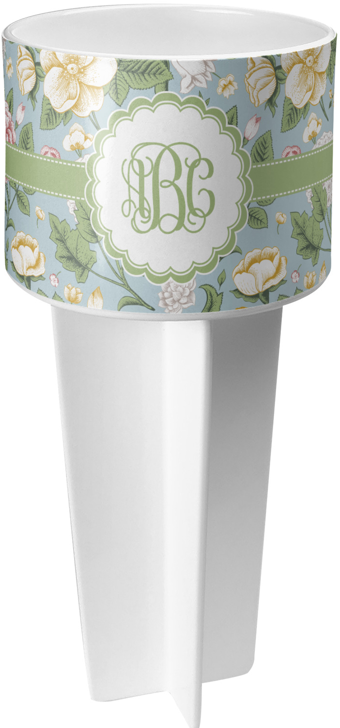 This cup holder has a large stake at its bottom that anchors it to the sand or ground below, while the cup holder rests above the stake. The entire drink holder is made of durable plastic and displays your customization around the cup holder portion. We sell these personalized beach spikers in two different colors: black and white.