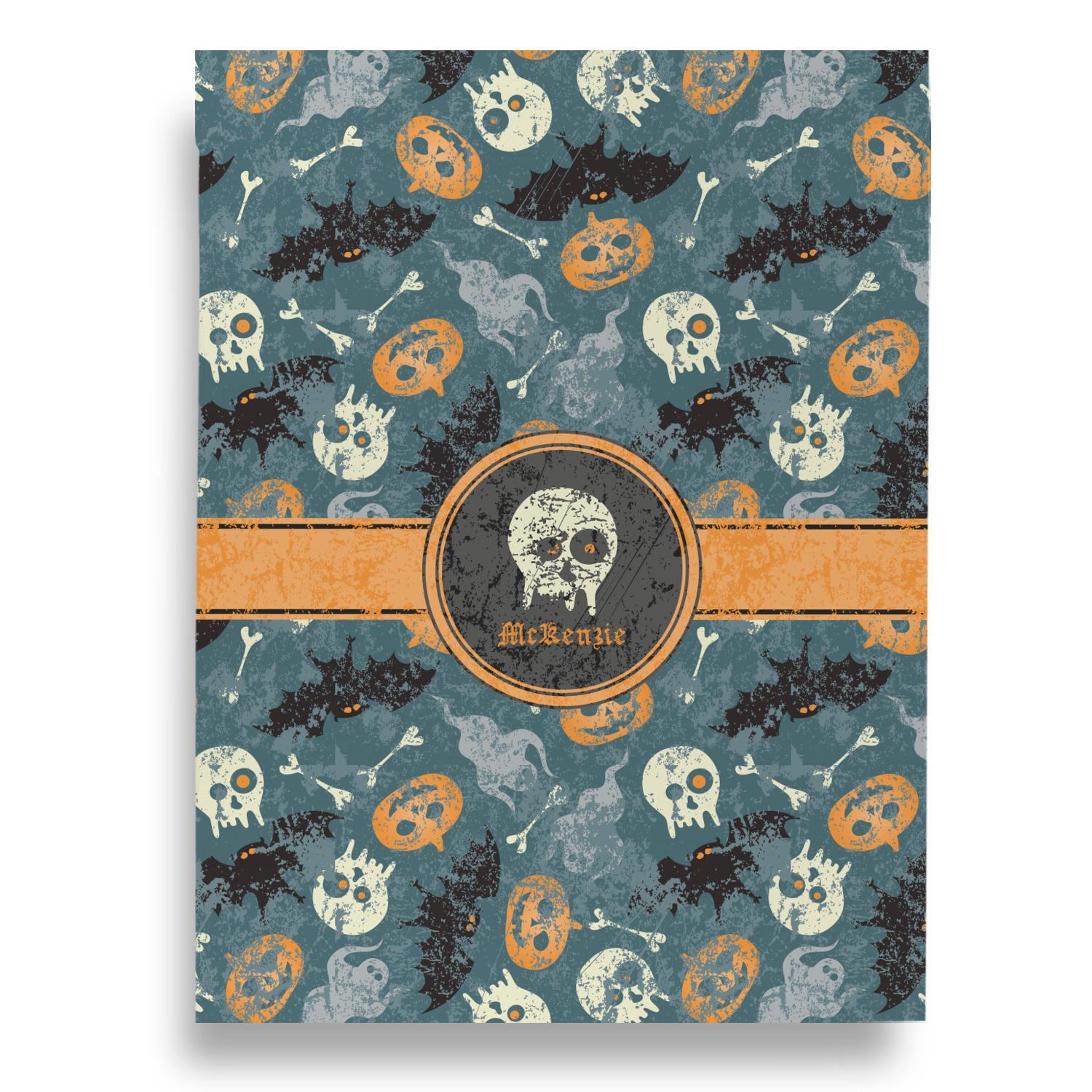 Halloween: the one day a year when it's totally normal to see human bones and skulls everywhere. This design brings together all your favorite (and usually quite terrifying) things from October 31st on a deep vintage blue background.