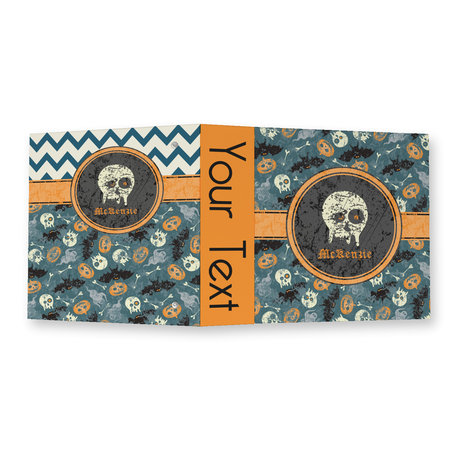 Made from a sturdy cardboard base with a full high quality canvas textured vinyl wrap with the design of your choice. Unlike our standard 3-ring binder with the full wrap design your artwork wraps from the front and back and into the inside of the binder.