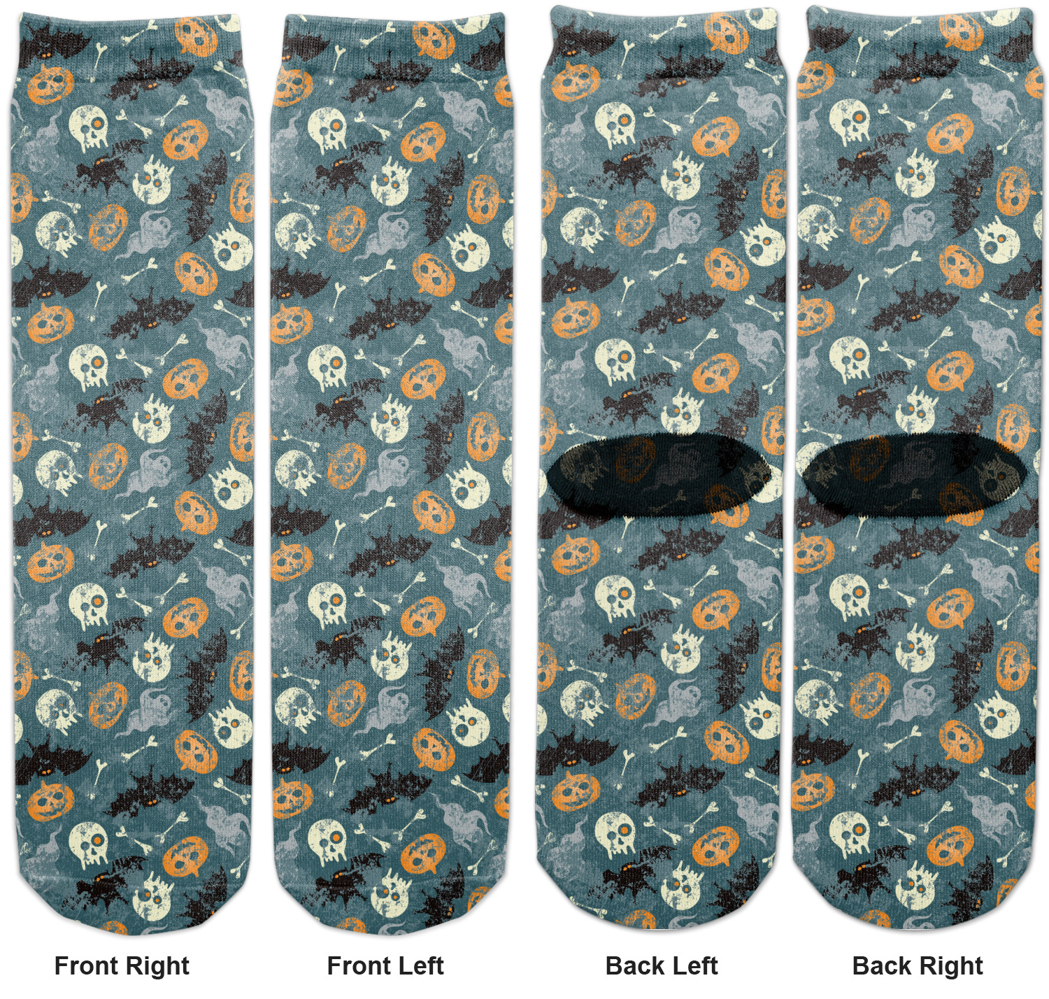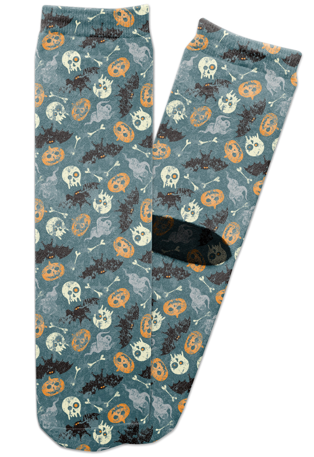 Halloween: the one day a year when it's totally normal to see human bones and skulls everywhere. This design brings together all your favorite (and usually quite terrifying) things from October 31st on a deep vintage blue background.