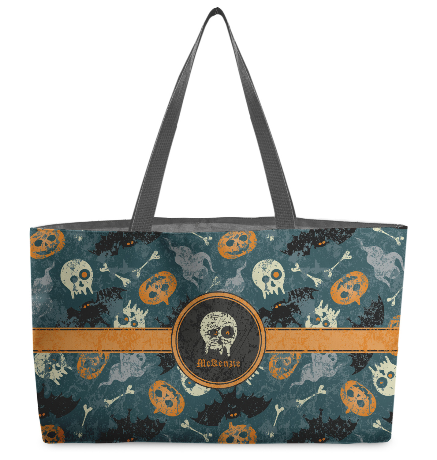 These beach totes are handmade here in the USA. Fabric is printed with your design. The tote is then sewn from the fabric pieces, lining and handles added.