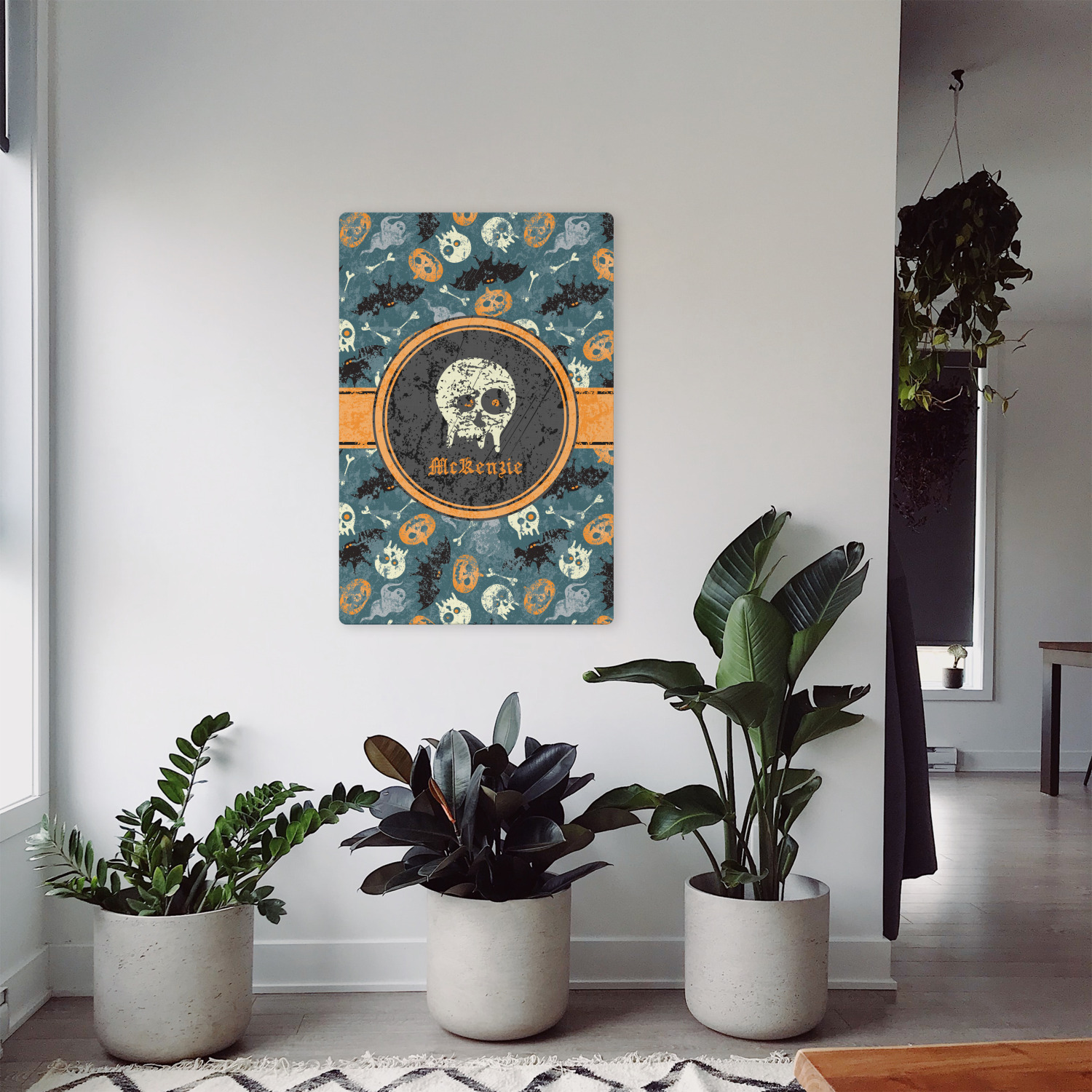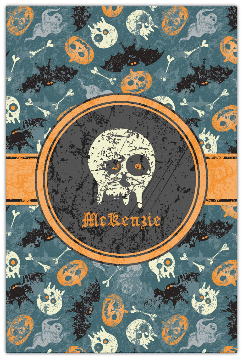 Halloween: the one day a year when it's totally normal to see human bones and skulls everywhere. This design brings together all your favorite (and usually quite terrifying) things from October 31st on a deep vintage blue background.