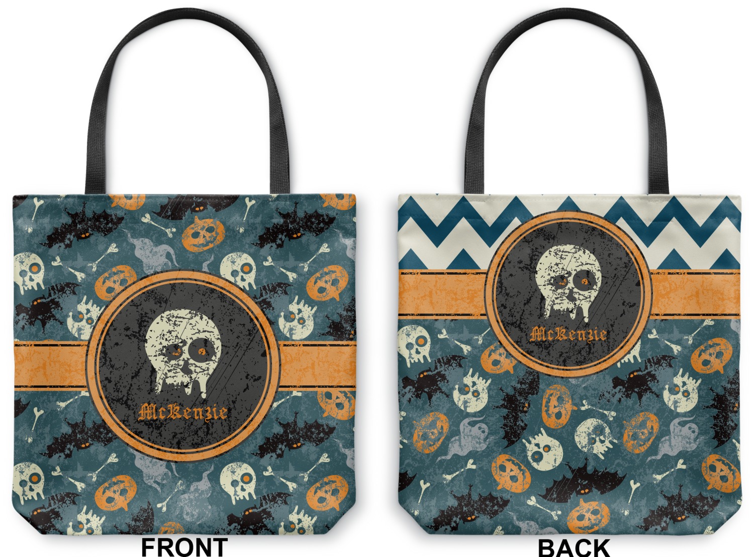 Halloween: the one day a year when it's totally normal to see human bones and skulls everywhere. This design brings together all your favorite (and usually quite terrifying) things from October 31st on a deep vintage blue background.