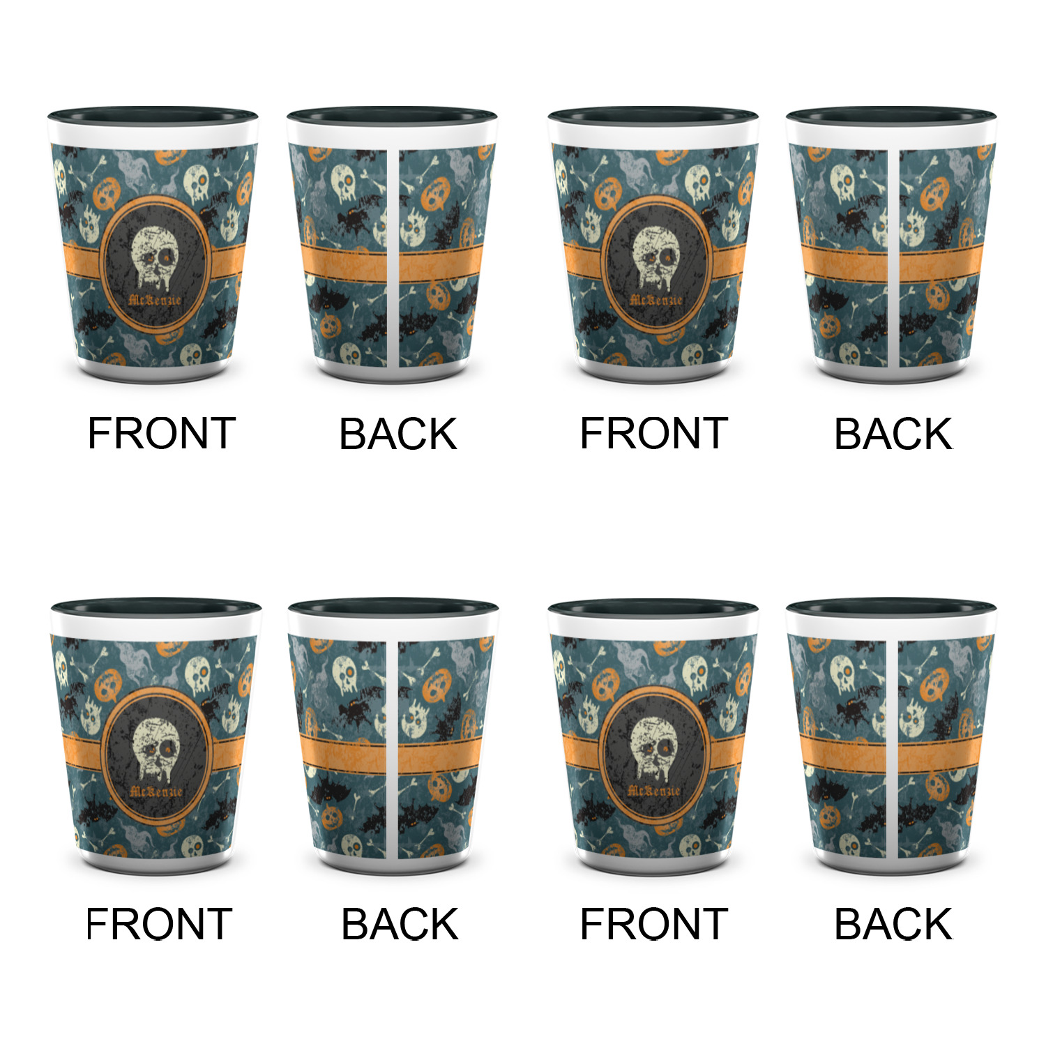 Made from ceramic these shot glasses are printed in full color with the design of your choice. These are a standard 1.5oz size and stand 2.25" tall. Available in a full white ceramic or a two-tone with a black color inside the shot glass. Buy a single or a set of 4, all of which can be designed separately to get you just what you want and need.