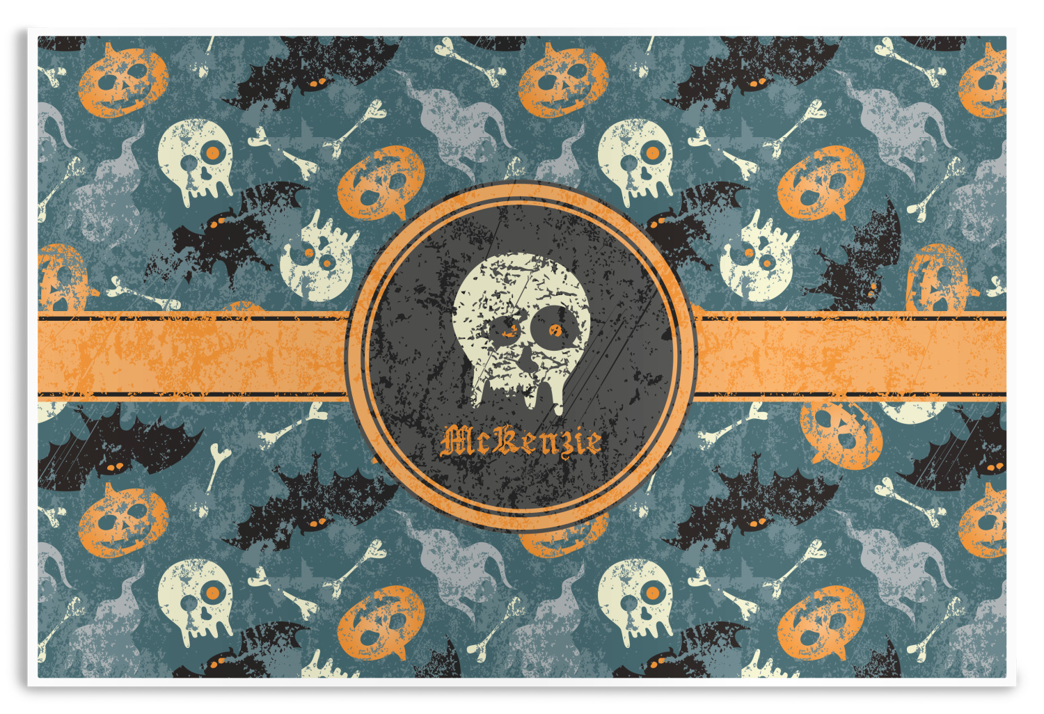 Halloween: the one day a year when it's totally normal to see human bones and skulls everywhere. This design brings together all your favorite (and usually quite terrifying) things from October 31st on a deep vintage blue background.