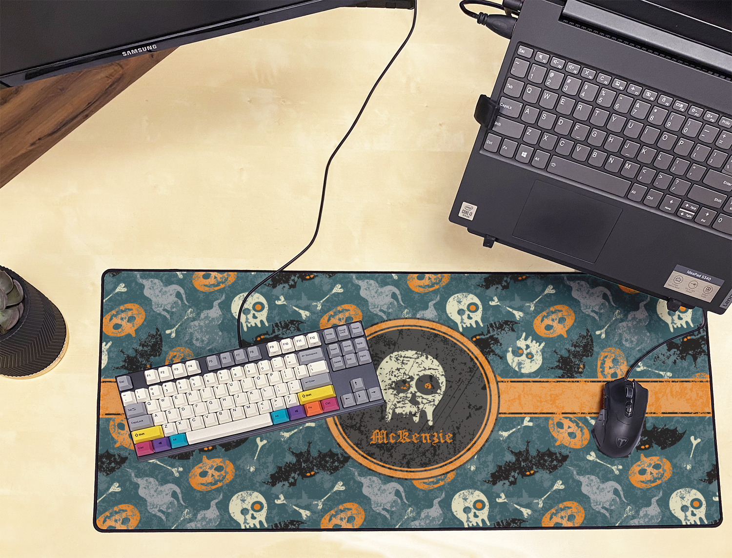 Halloween: the one day a year when it's totally normal to see human bones and skulls everywhere. This design brings together all your favorite (and usually quite terrifying) things from October 31st on a deep vintage blue background.