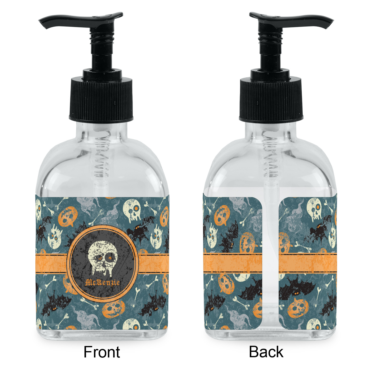 Crafted from a high-quality glass, these soap dispensers and lotion dispensers are durable and robust, while still looking elegant. They are sold with black pumps. Each soap dispenser pump measures at 6.5 by 2.25 inches. On these soap pumps, we display your customized design on a personalized vinyl adhesive on three sides. That way, you can judge how much liquid is in the bottles from the back.