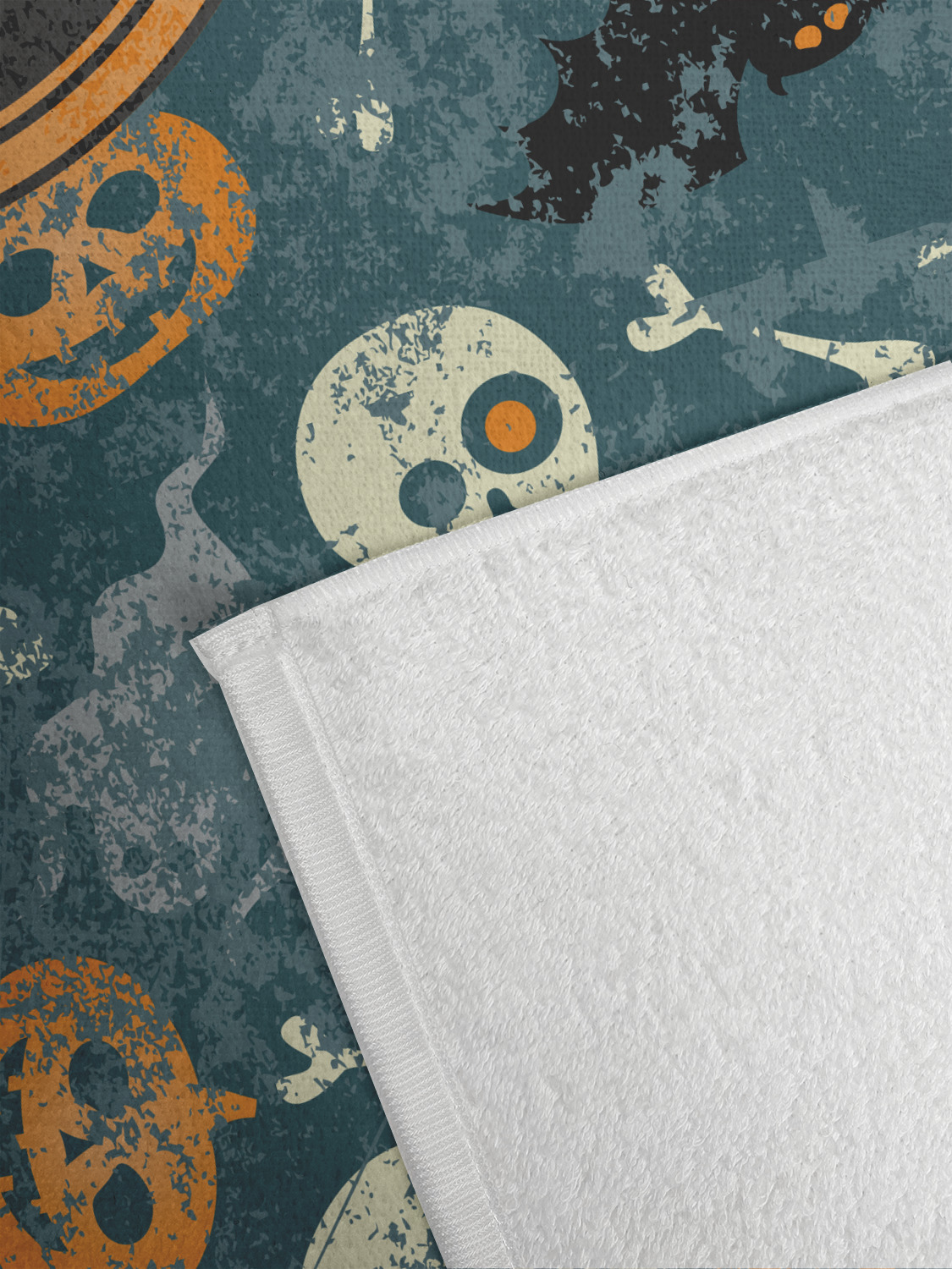 Halloween: the one day a year when it's totally normal to see human bones and skulls everywhere. This design brings together all your favorite (and usually quite terrifying) things from October 31st on a deep vintage blue background.