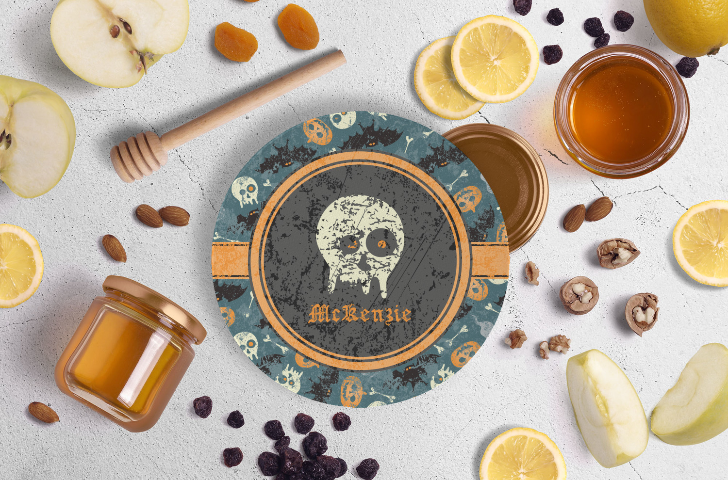 The round label with the graphic of your choice is the perfect place for personalization. Happy haunting.