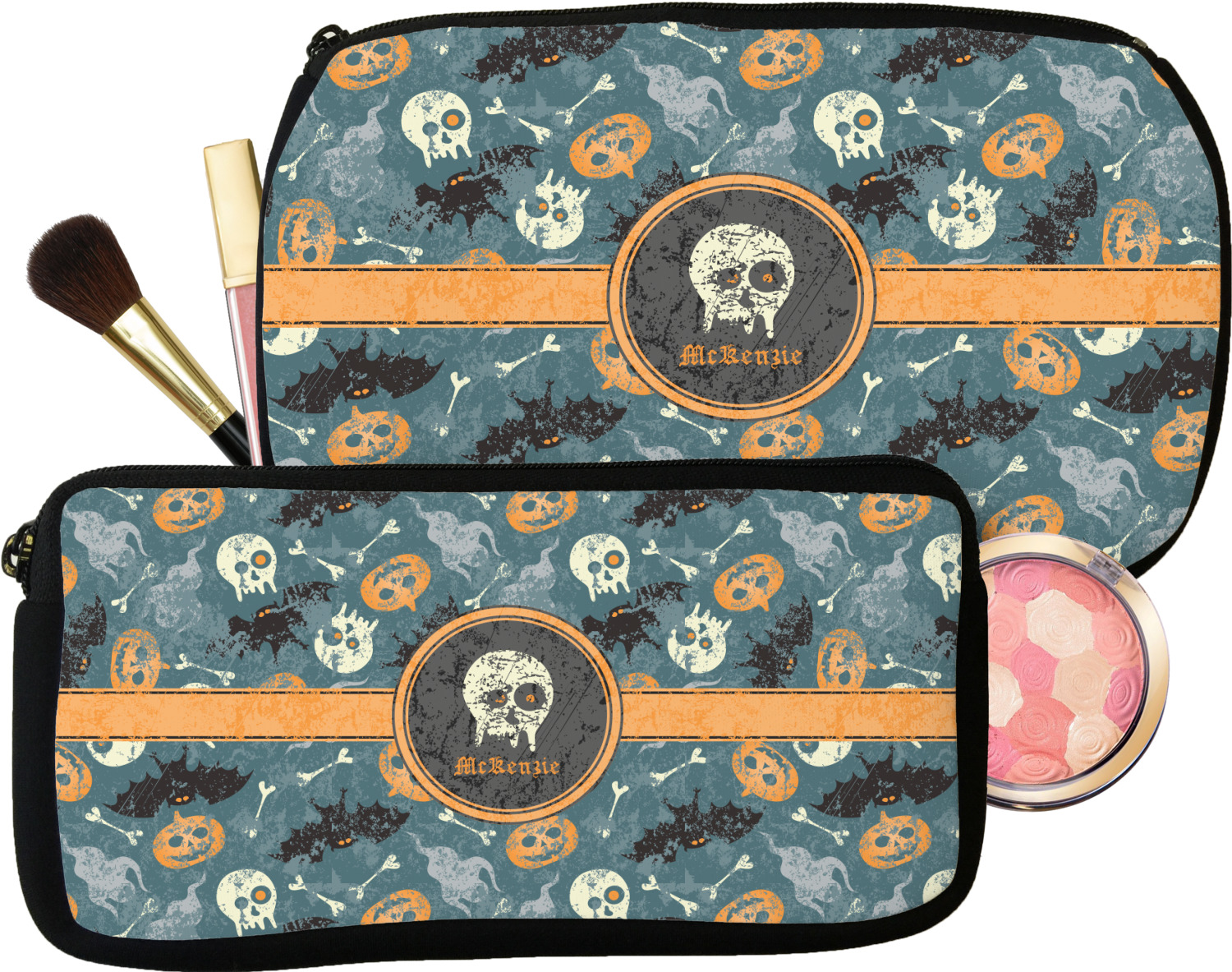 Our personalized makeup bags are available in many different designs, patterns and colors - so you are sure to find one that will love. They are made of neoprene (same material as wet-suits) and thus are water resistant, so spillages in your makeup bag will not end up all over you purse. They are customized on one side and are black on the other side and the zipper is black as well.