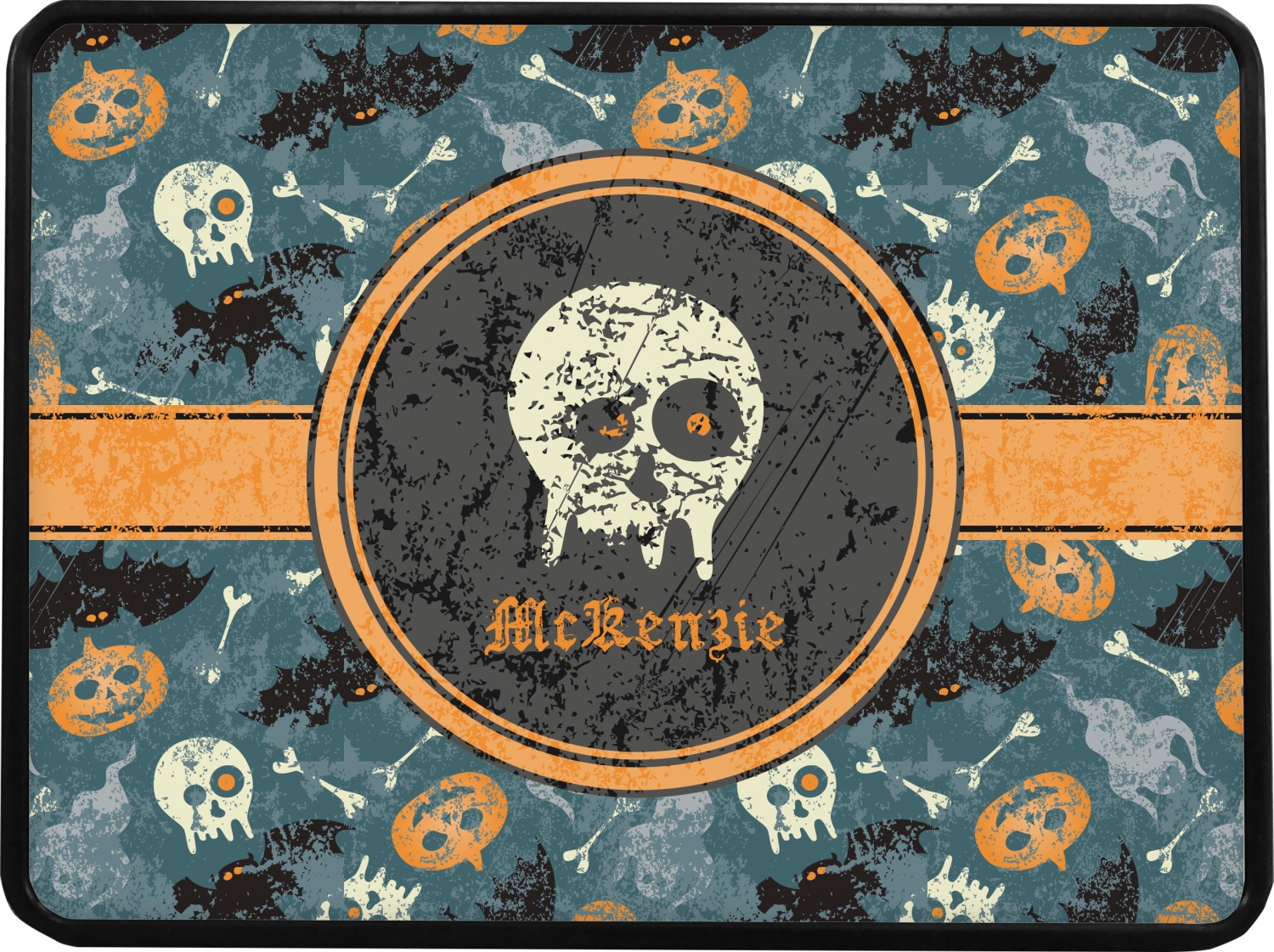 Halloween: the one day a year when it's totally normal to see human bones and skulls everywhere. This design brings together all your favorite (and usually quite terrifying) things from October 31st on a deep vintage blue background.